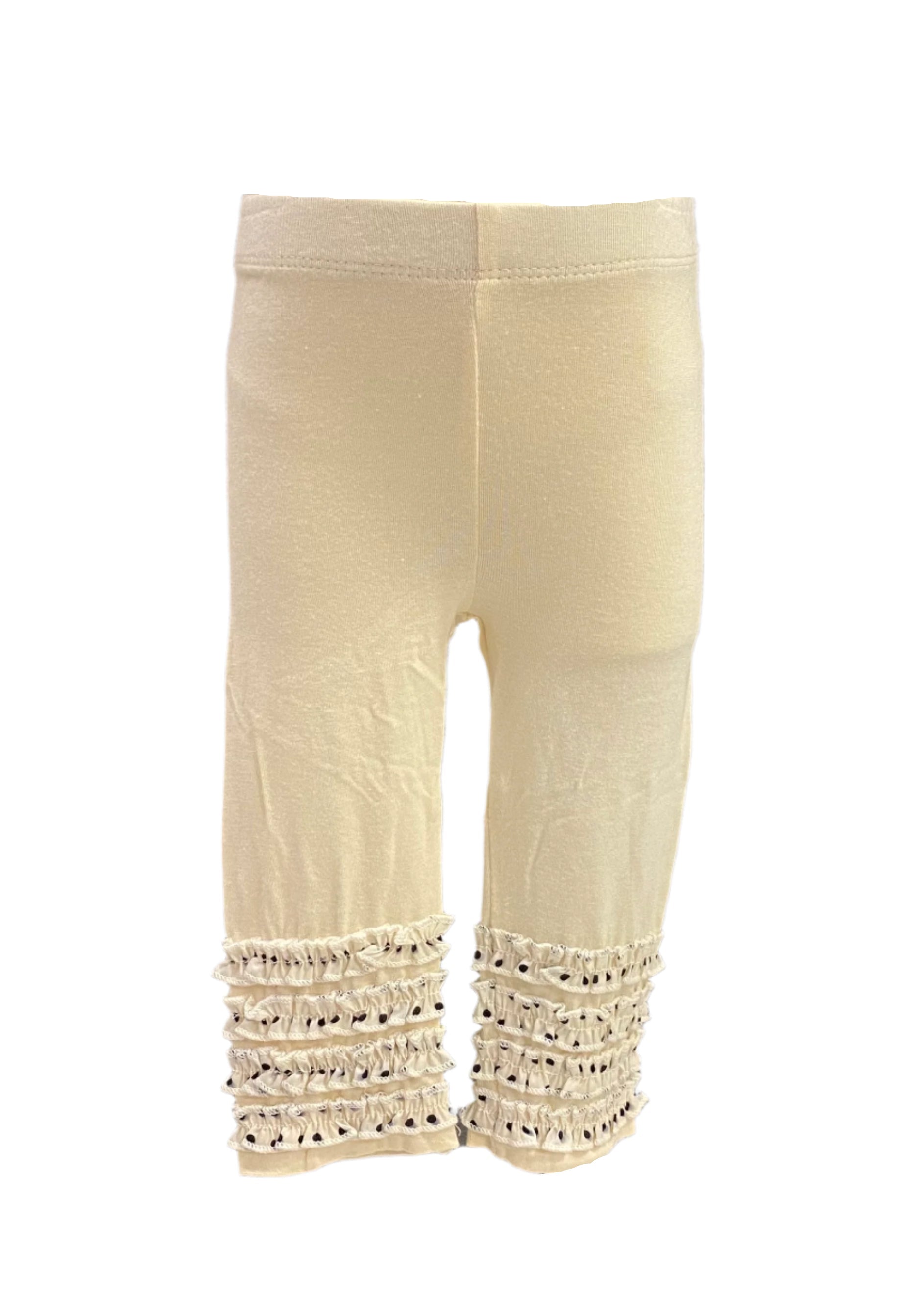 This ivory leggings is designed with frills that has black polka dot prints. Styled by SARA SARA from USA.