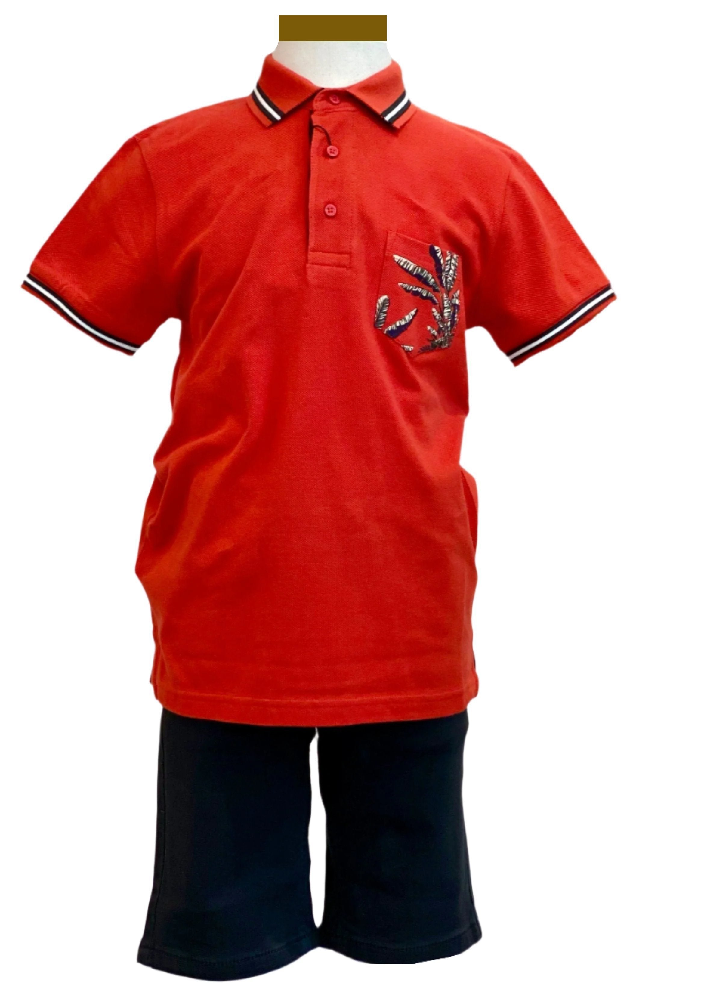 Made in comfortable cotton piqué. A classic smart-casual style, it has a stripe rib collar and branded button fastenings. Has a chest pocket with banana plant on front and back. Bermuda shorts has elasticated waistband and drawstring for adjustment with five pockets.