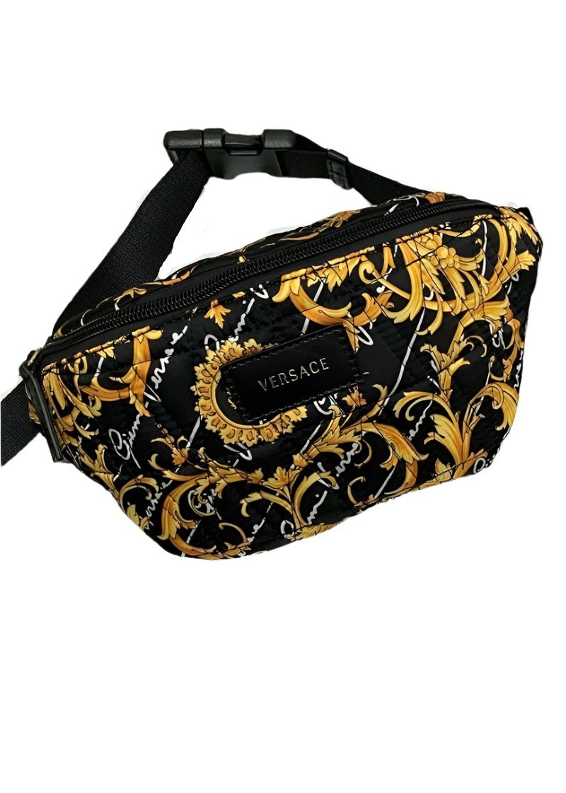 Stylish belt bag. Featuring barocco frenzy print design. Spacious, zip fastening. Has adjustable strap with side release buckle.