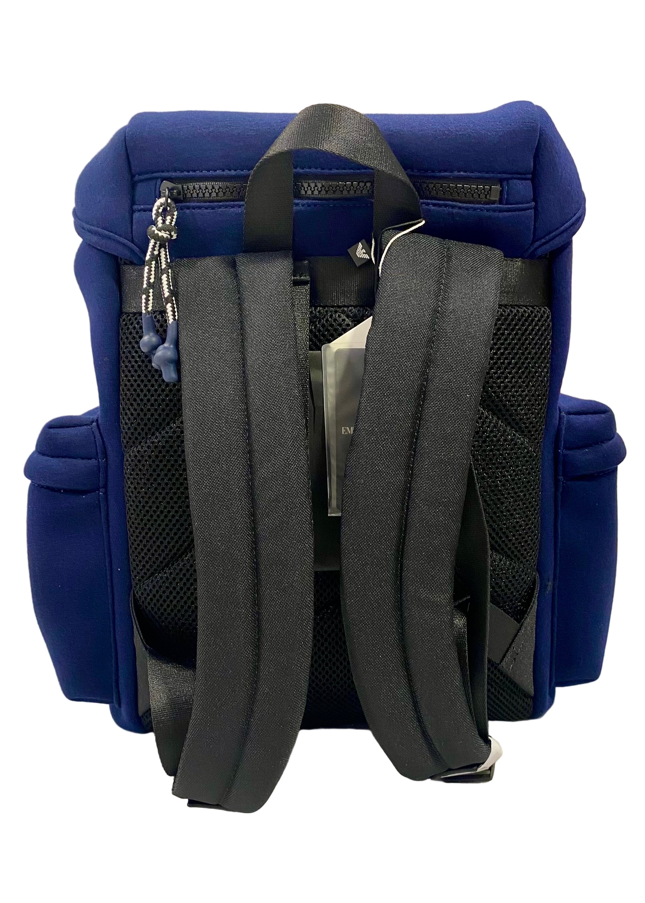 Blue boy's backpack. Spacious main compartment. String and two buckle fastening with extra compartment on both sides. Finished with an iconic 'EA' eagle logo patch.