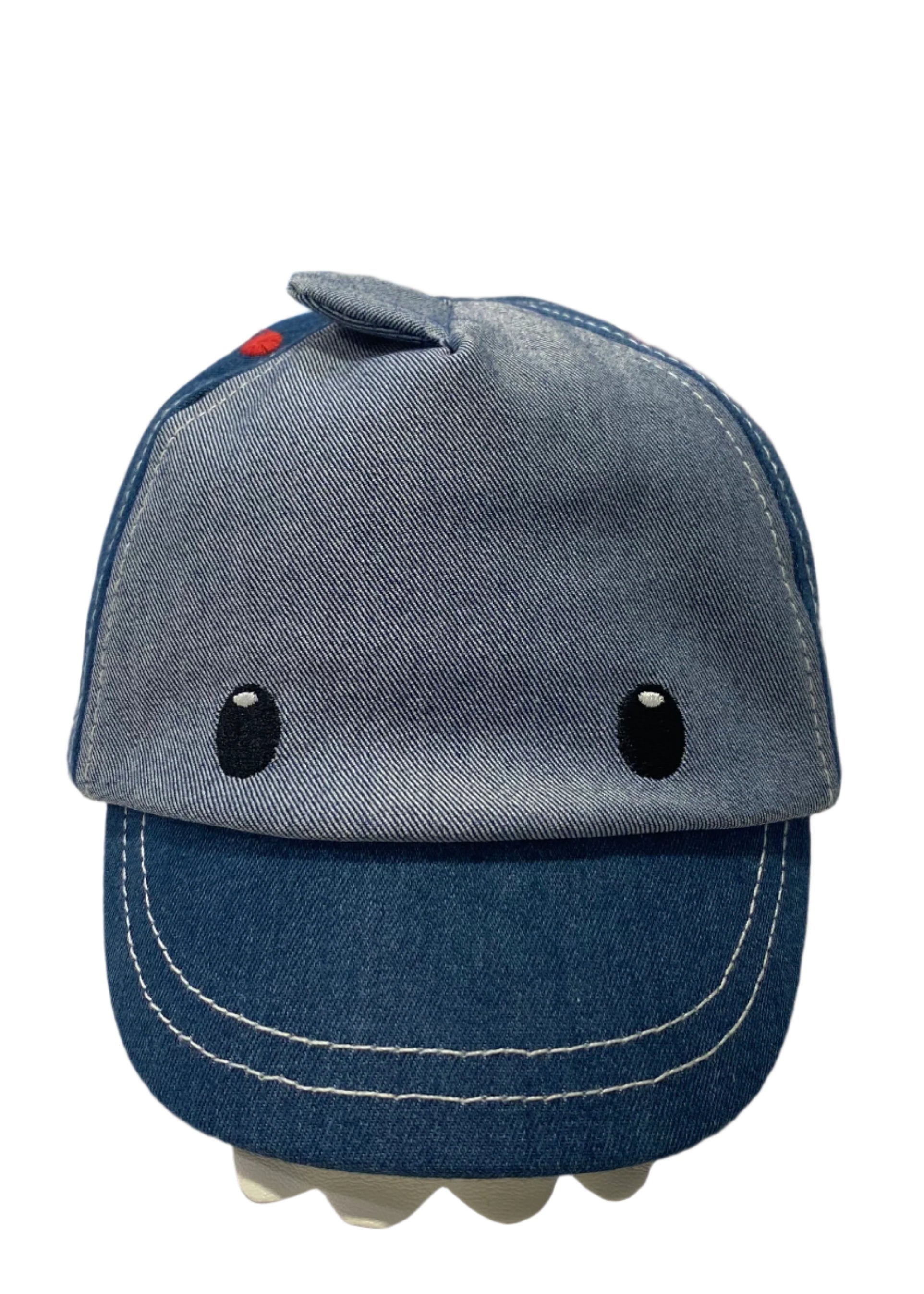Made of soft light fabrics, good for summer days. Has embroidered shark face design. Has adjustable closure at the back.