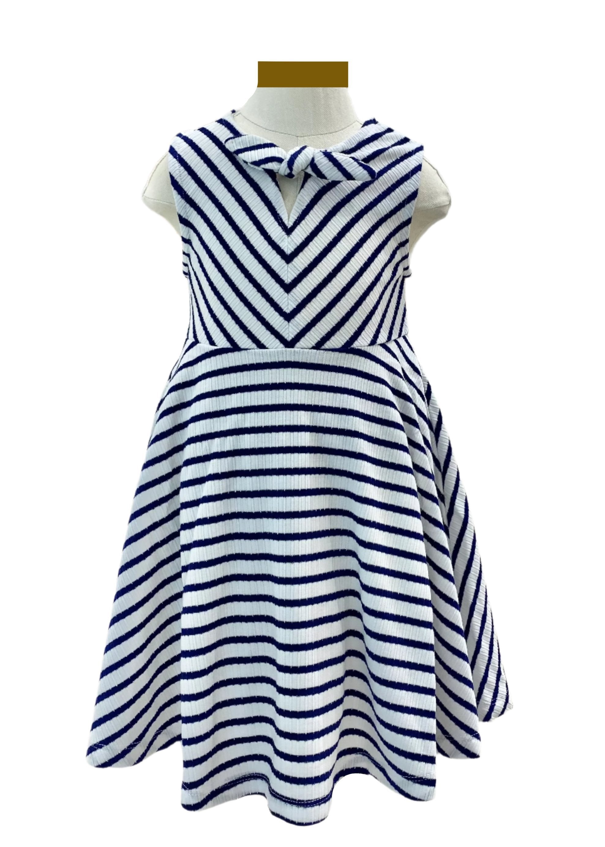 Lovely sleeveless dress, designed with diagonal stripe pattern with silvery glitter. It has a triangular opening at the back. It is soft and flowy on the skirt.