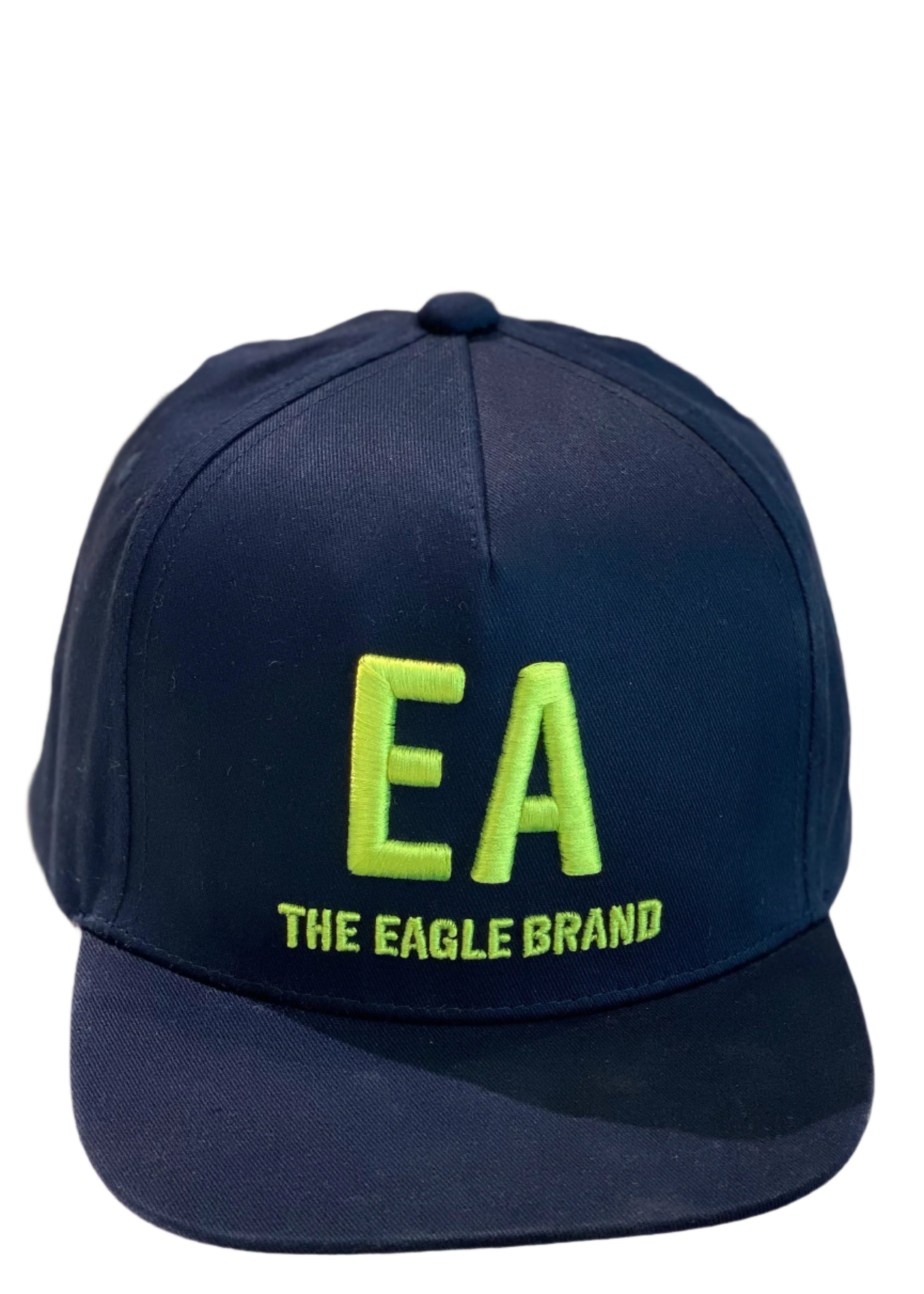 Boy's baseball hat. Designed with brand initial 'EA' embroidery on the crown and a brand name embroidery 'EMPORIO ARMANI' under the visor.