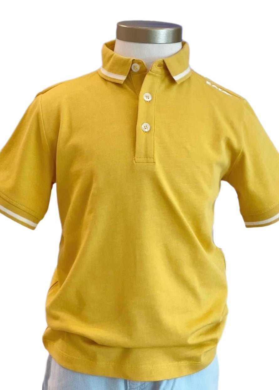Stretch cotton polo shirt designed with 'EA' eagle in rubber print in upper left side of the shoulder. Has white stripe on the collar and sleeves. Comfortable to wear.