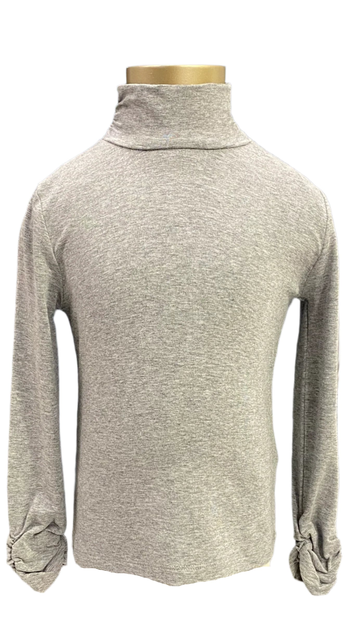 A chic and fashionable long sleeved top with a turtle neck design and gartered cuffs. Soft and stretchy. For casual wear.