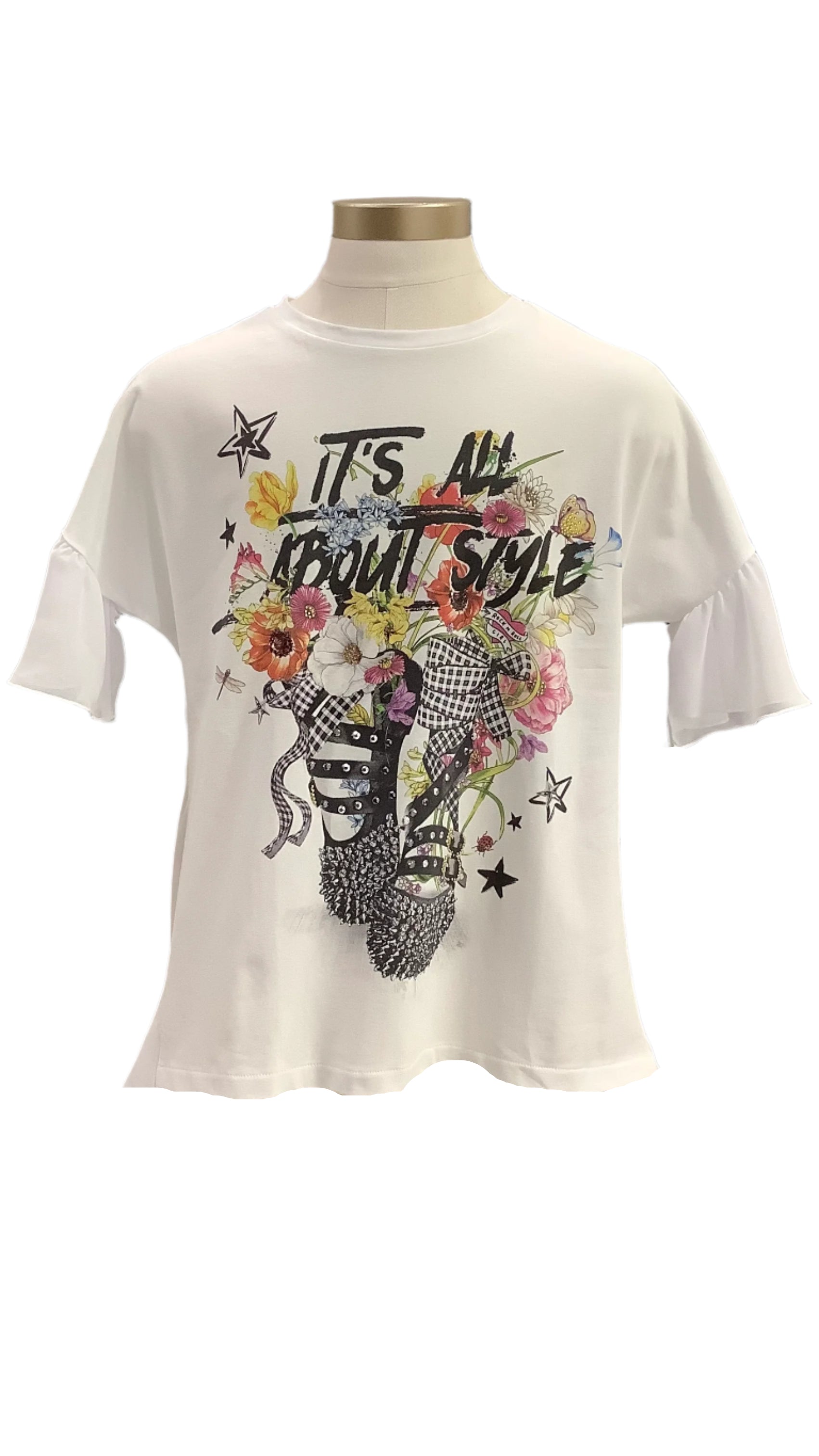Angel sleeve and long back top in chiffon fabric, printed on the front with micro crystals and studs embellishment. Stylish. A product of ELSY from Italy.