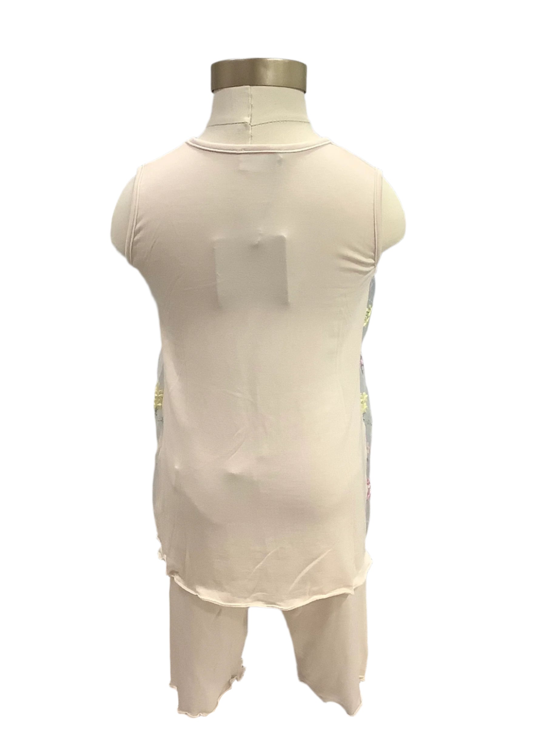 A stylish pyjamas by Story Loris, made in super-soft fabric. The 2-piece set includes a sleeveless top with a round neckline and has embroidered multi color flowers. Matching with short that has elasticated waistband.