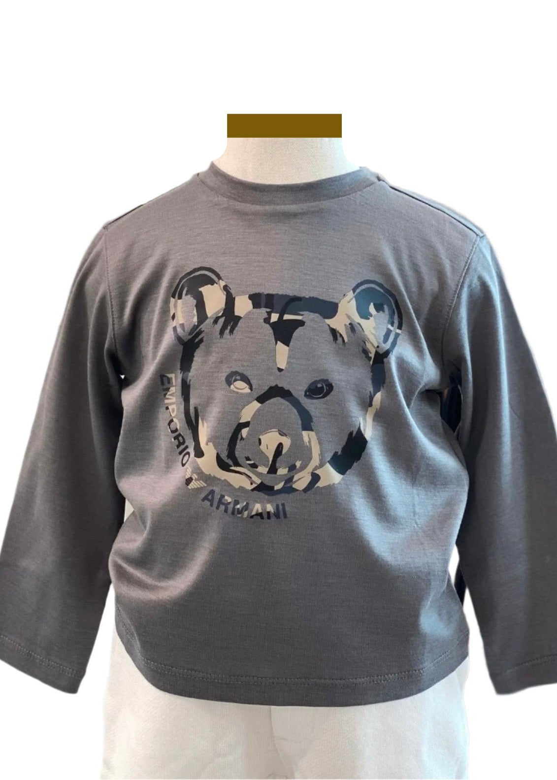 Round neck long sleeves t-shirt printed with bear design on the chest. Button snap fastening at the back for easy wearing.