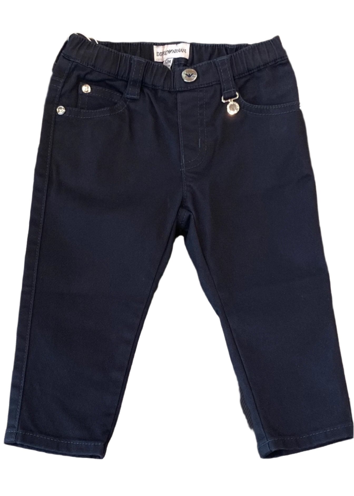 This trouser is perfect to match with your baby's casual or formal tops. Has five pockets with brand silver bling and has a silver brand logo at back pocket.