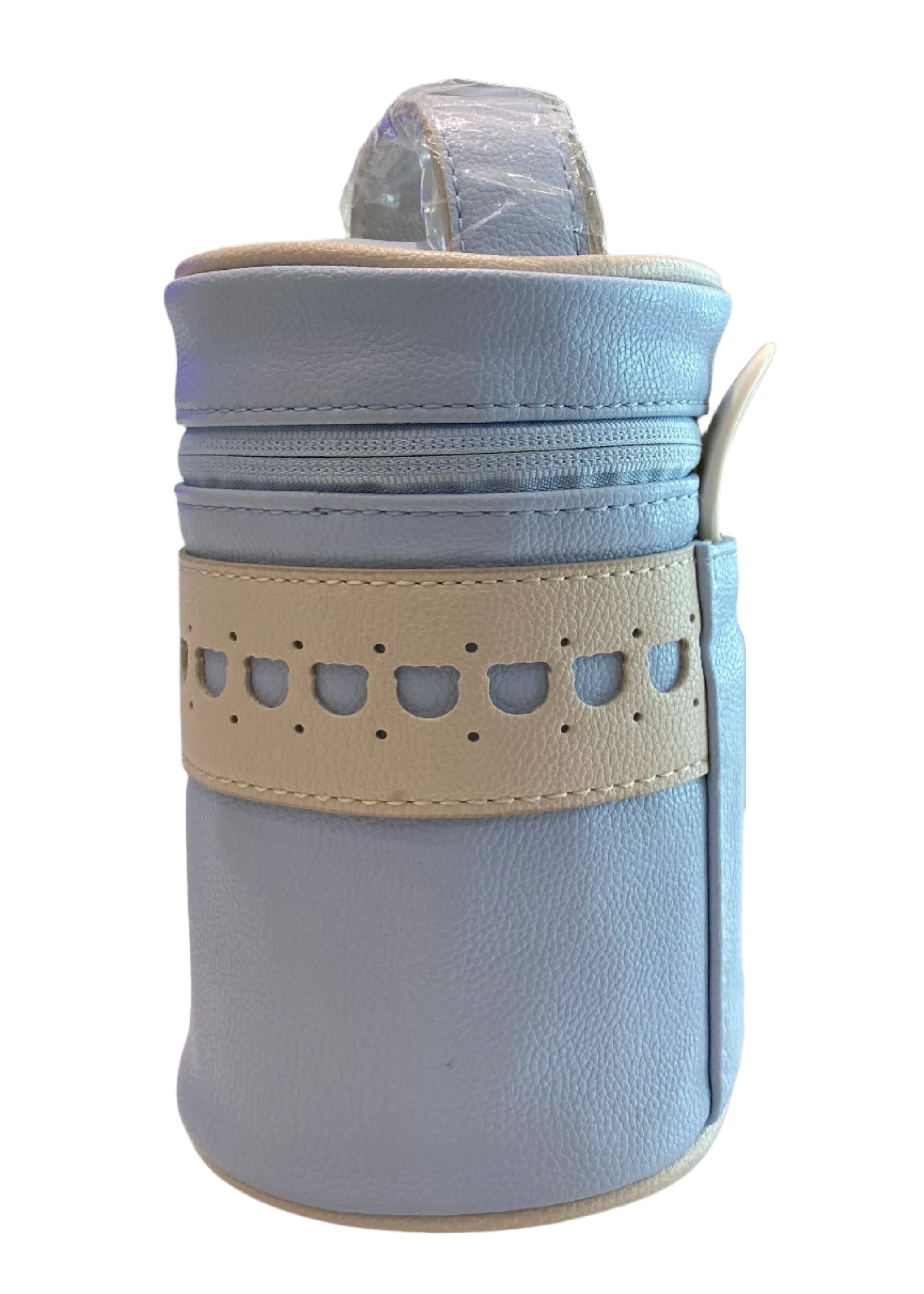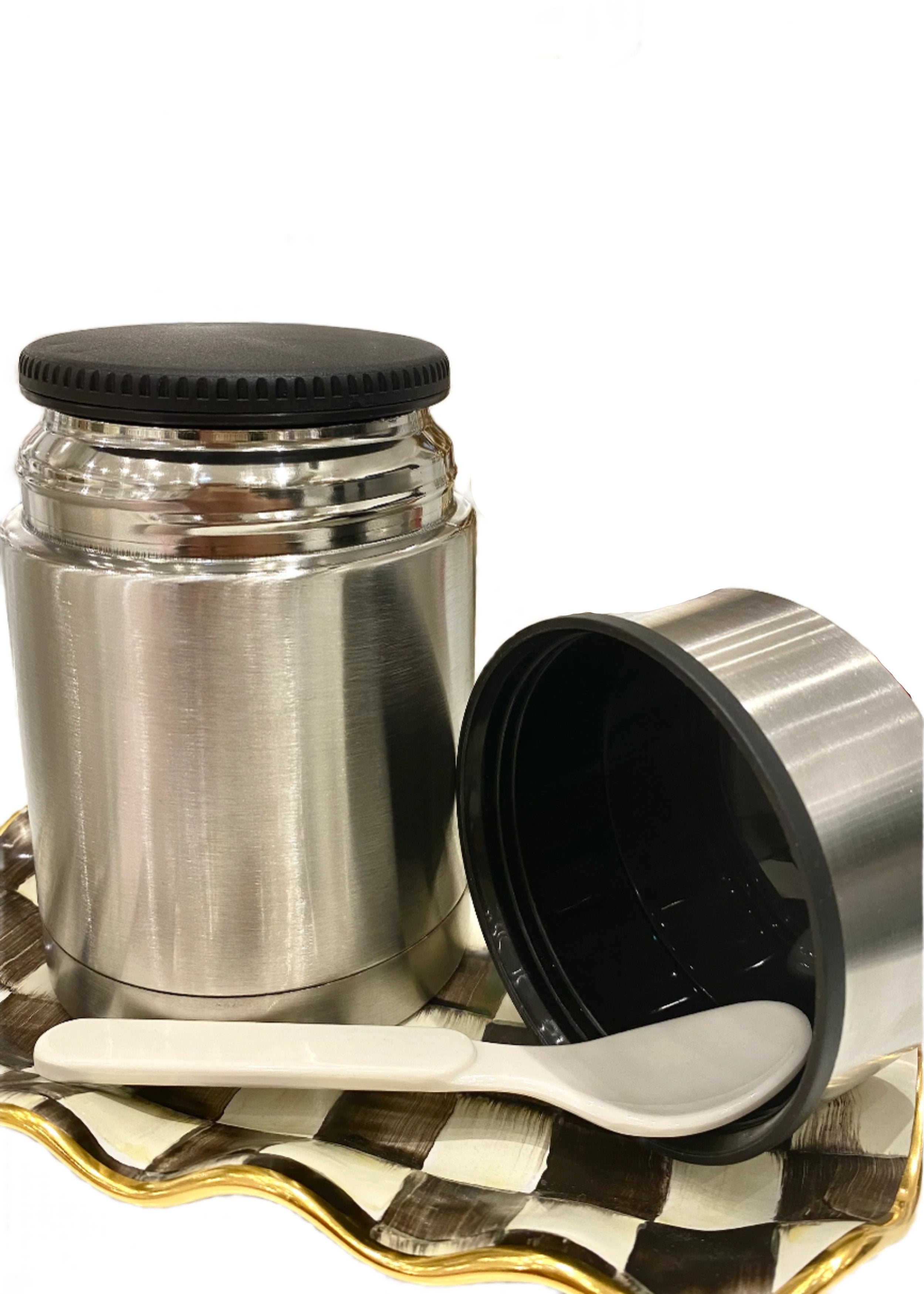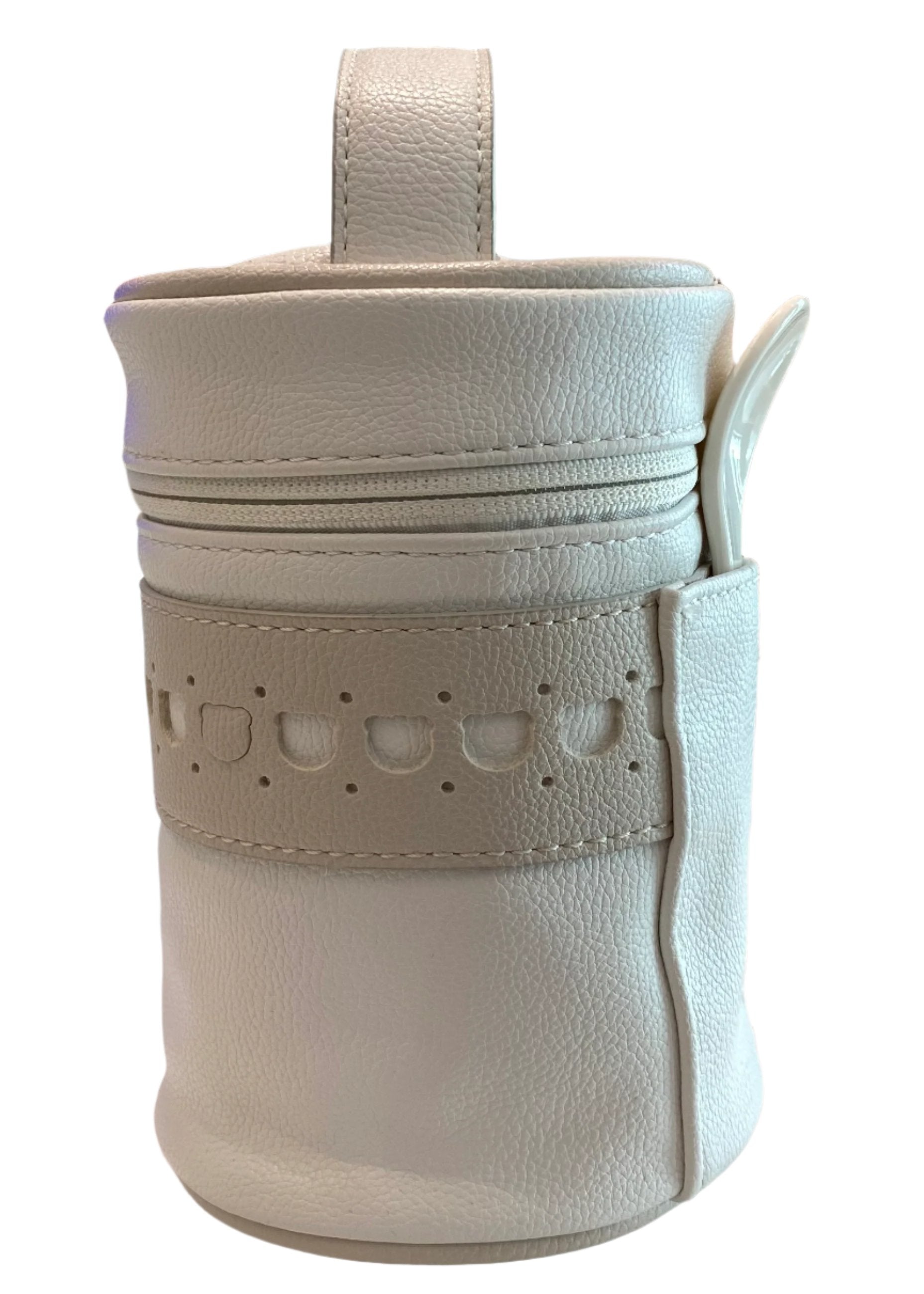 Ideal to keep you baby's food fresh. Stainless canister with double cap to secure the food's freshness. This comes with a thermal holder which keeps the food's temperature. It also comes with a ceramic spoon.