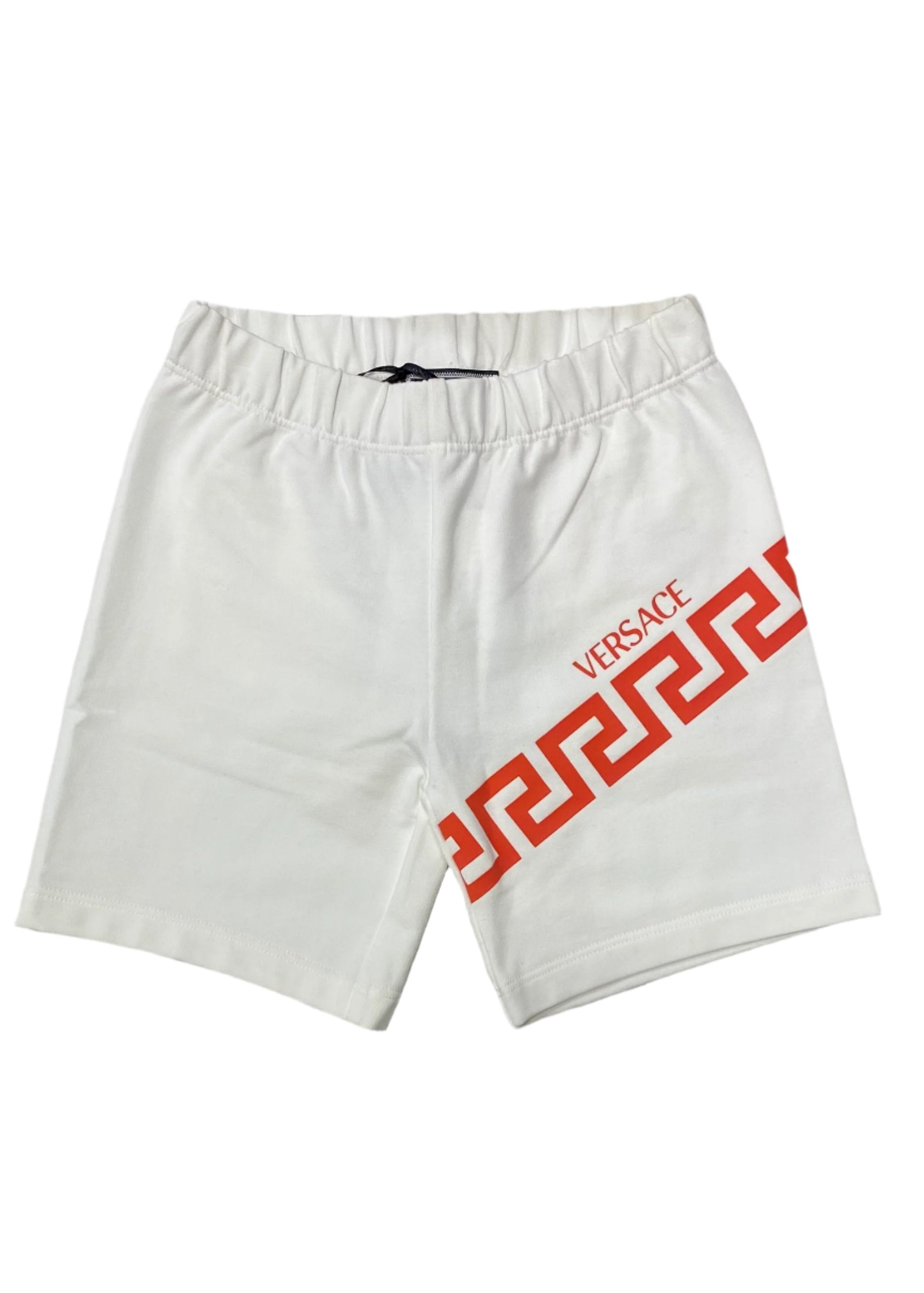 Soft, comfortable short that is elasticated on the waist. Designed with rubber Greek fret pattern on one side all the way to the back.