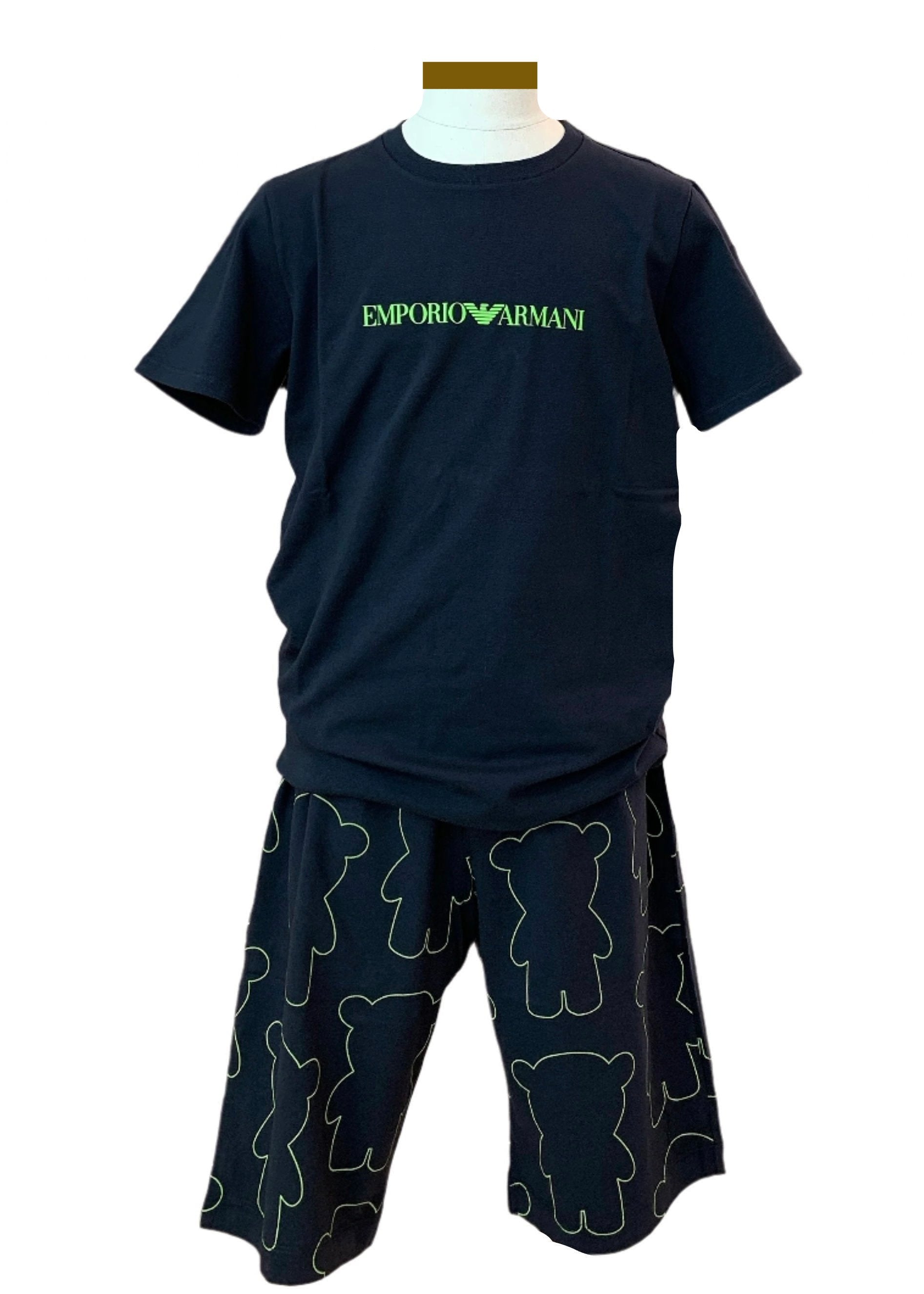 Made from soft cotton jersey with green 'Emporio Armani' print on the chest. Shorts has all over green bear design with elasticated waistband.