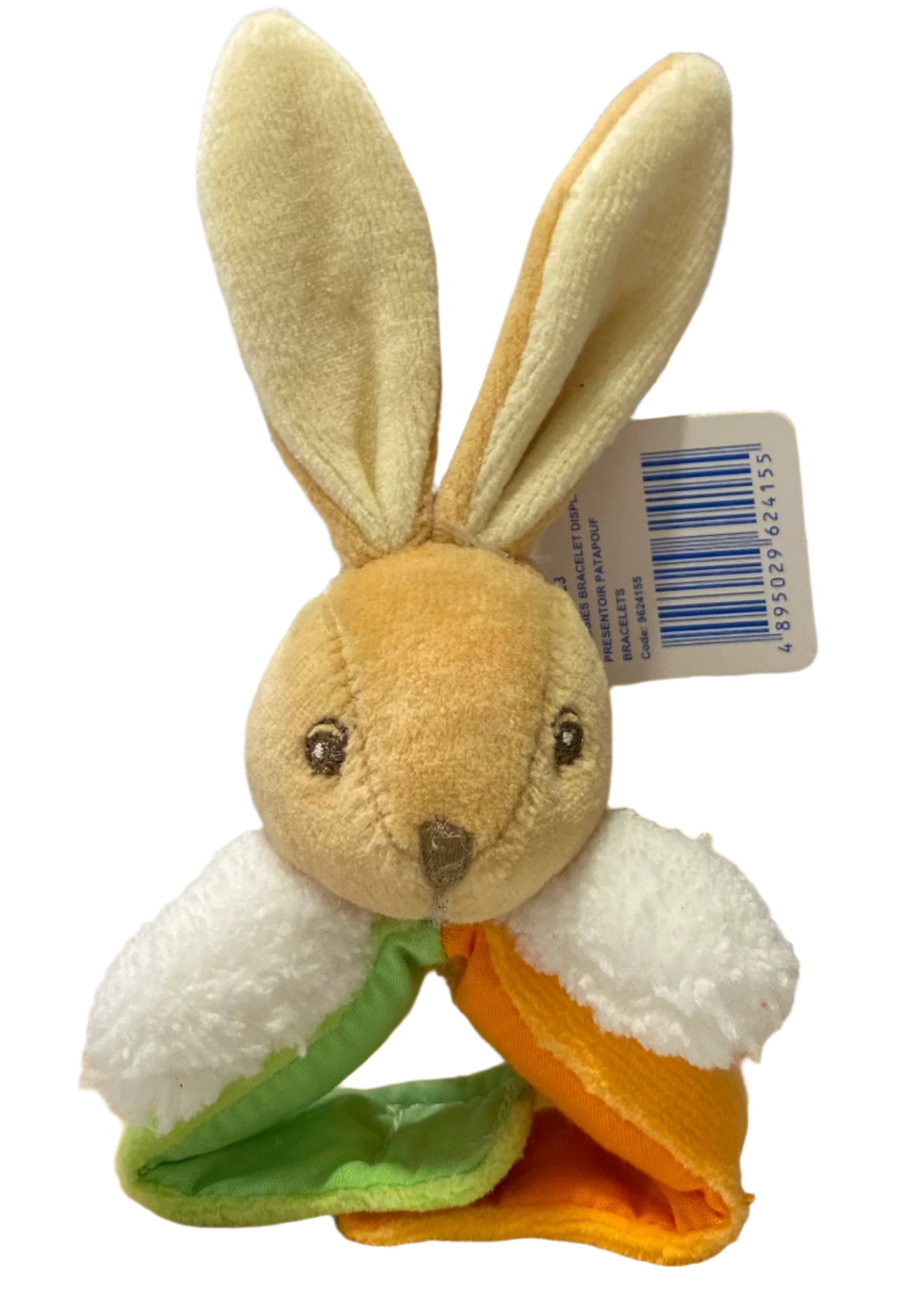 A rattle chubbies bracelet by Kaloo in bear and bunny design. Velcro strap fastening.