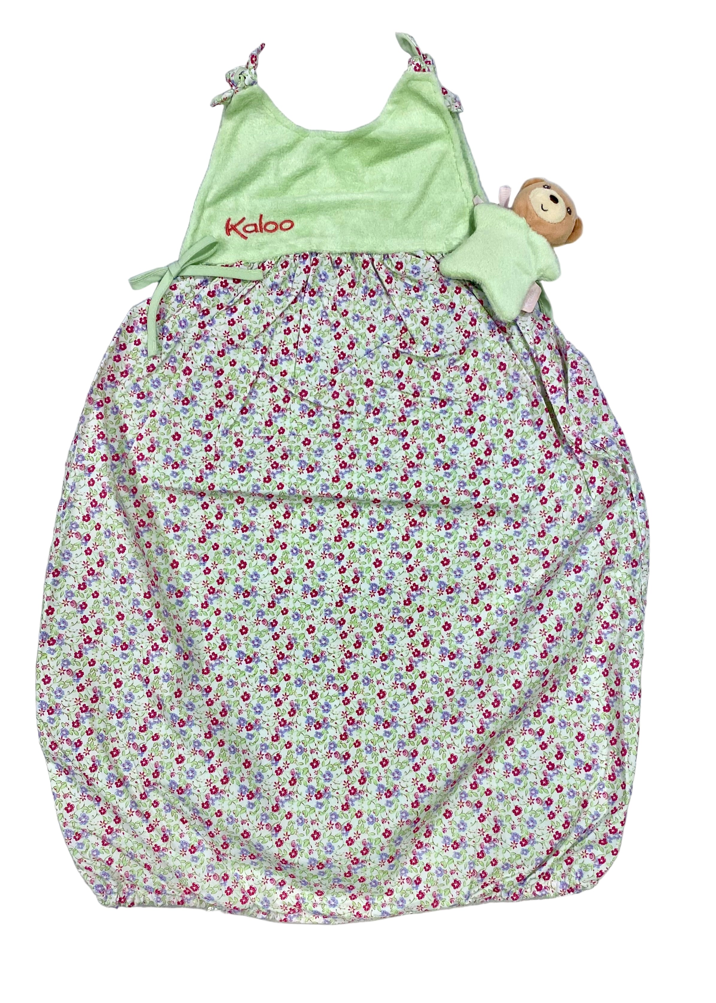 Floral summer sleeping bag by Kaloo. Embroidered brand name on the right chest. A strap on hem for adjustment.