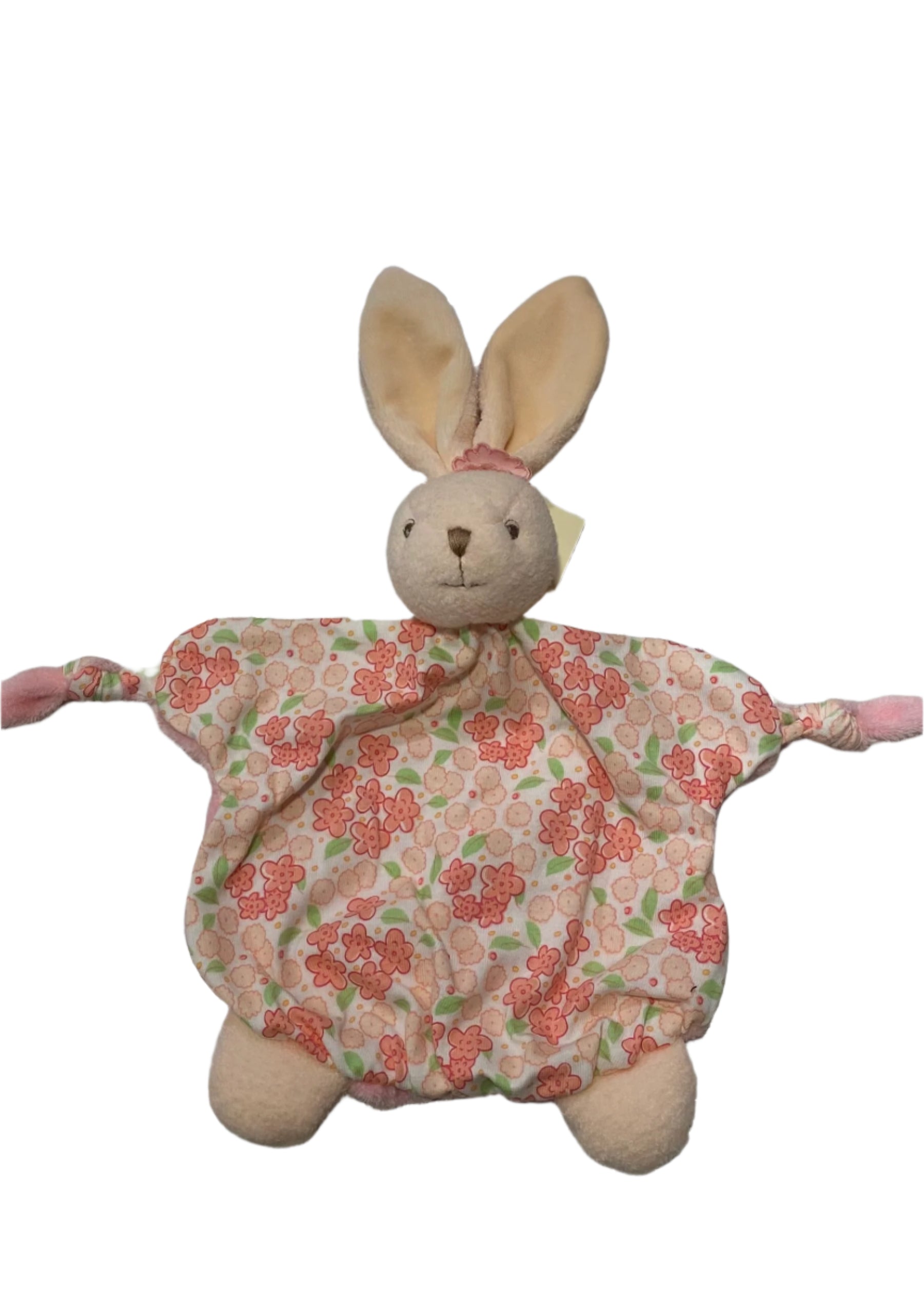 Soft, pink doudou rabbit comforter designed with flower prints.
