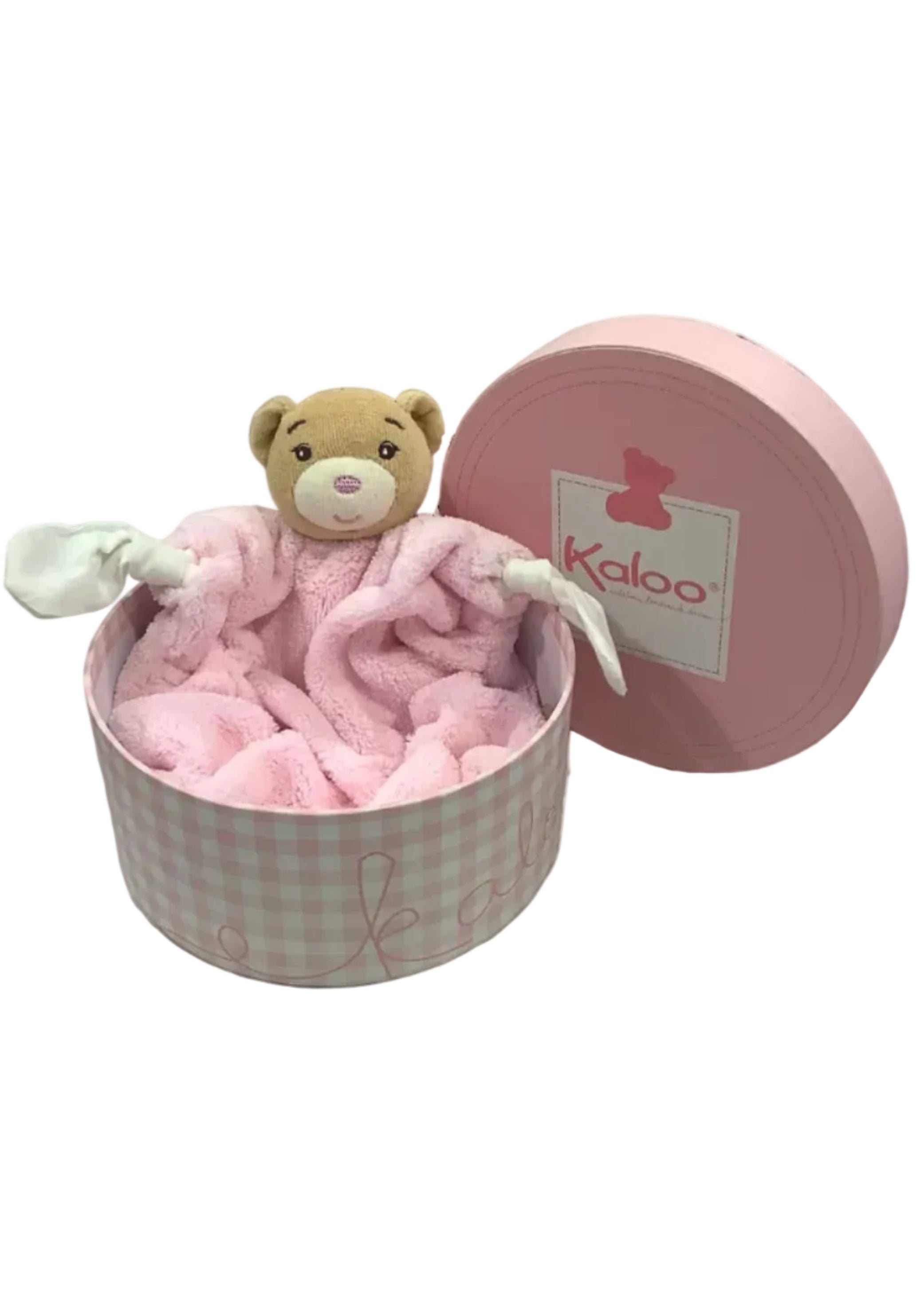 Plush comforter with bear design. Made with soft fabric. Cuddly.