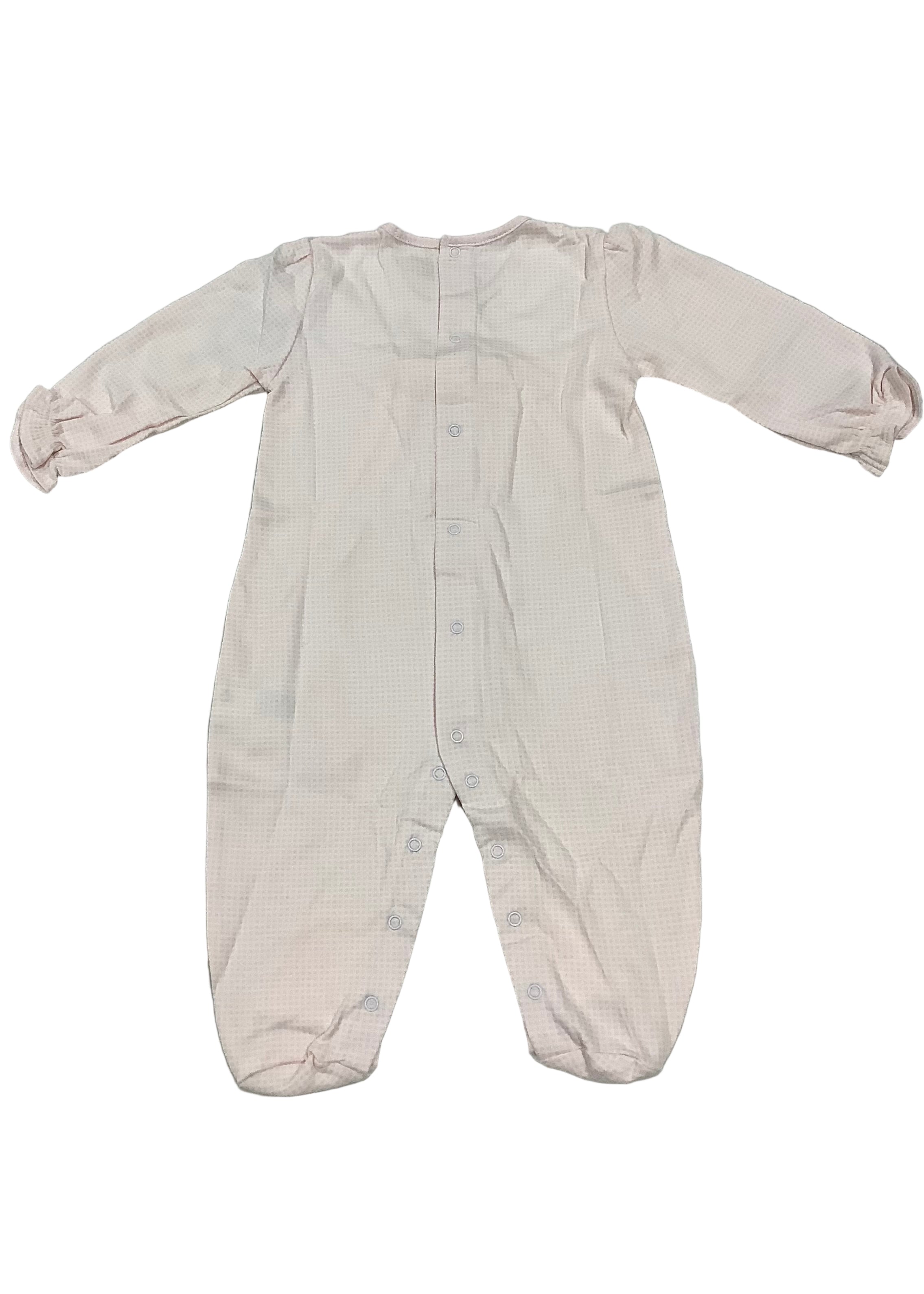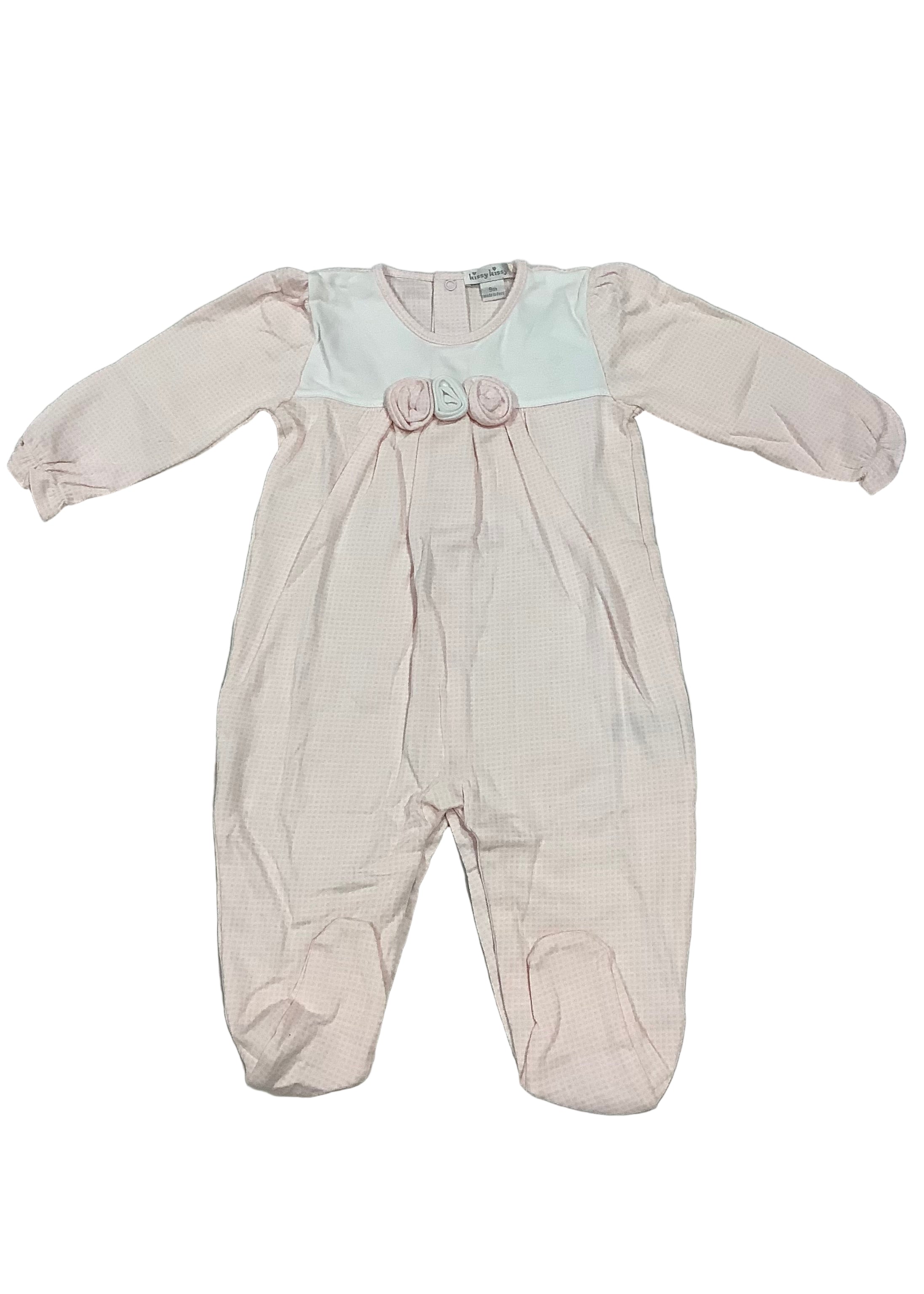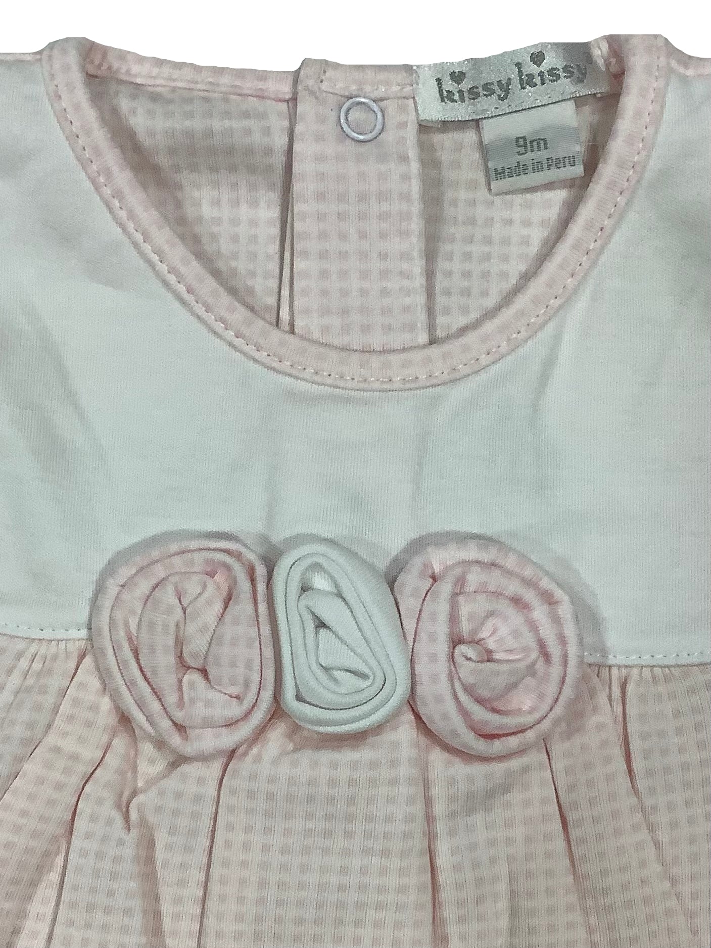 Simple yet pretty babygrow from Kissy Kissy. With three rose buds on the chest. Round neckline. Elasticated cuffs. Full poppers at the back. Soft and comfy.