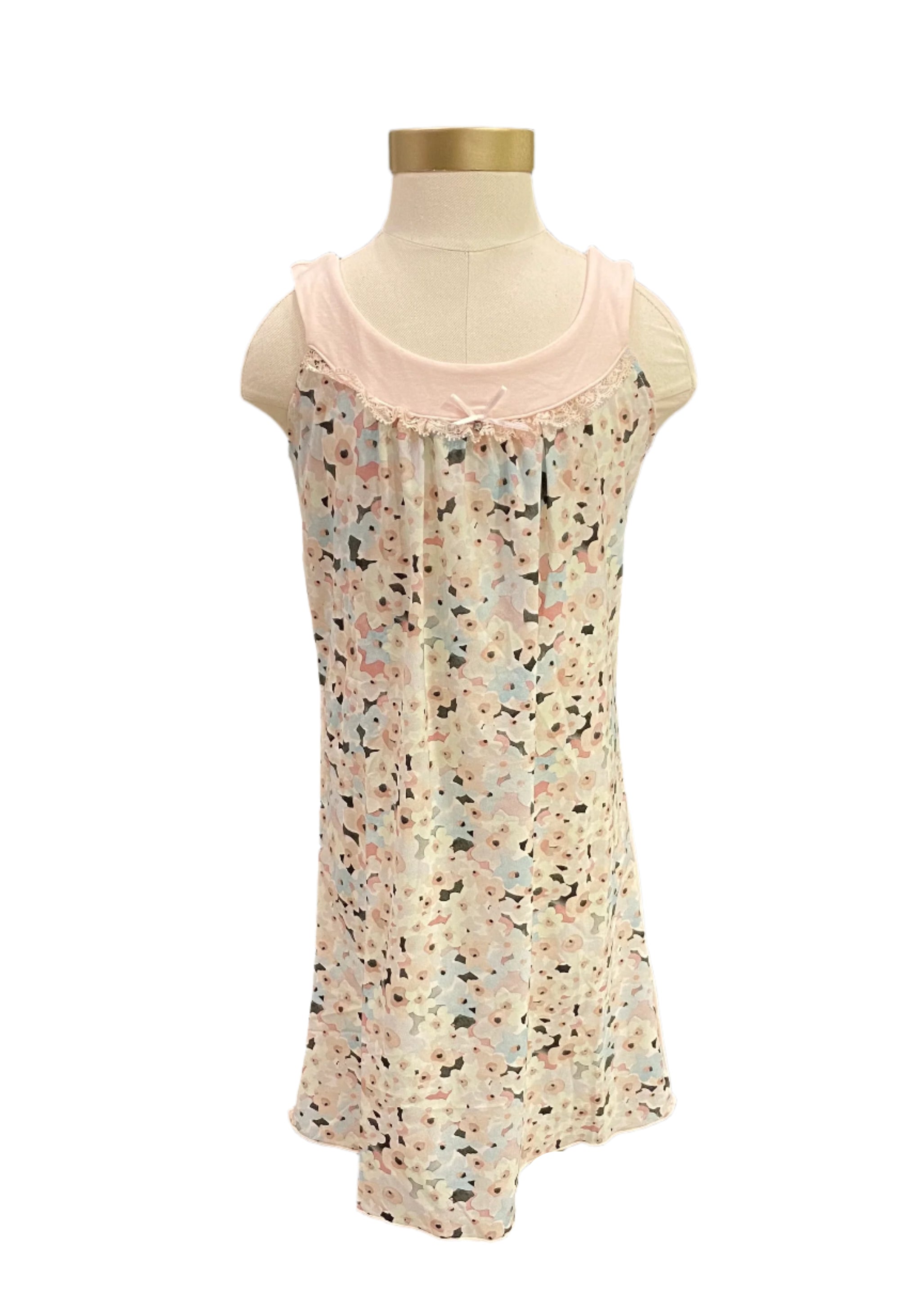 A floral pink night dress from La Perla, made in Modal, Polyester and an Elastan fabric. It has a pink ribbon bow by the neckline with a sparkling crystal and a lace trim. It sleeveless style makes it more comfortable to wear. Made in Italy.