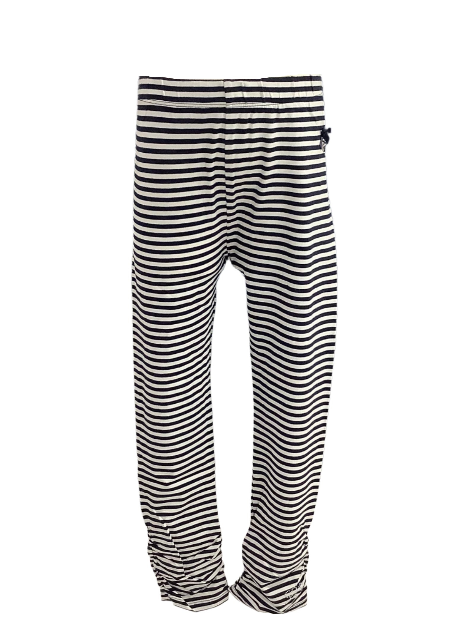 Stretchy, navy and white stripe leggings from Le Chic. Simply designed with ribbon and heart and micro crystals.
