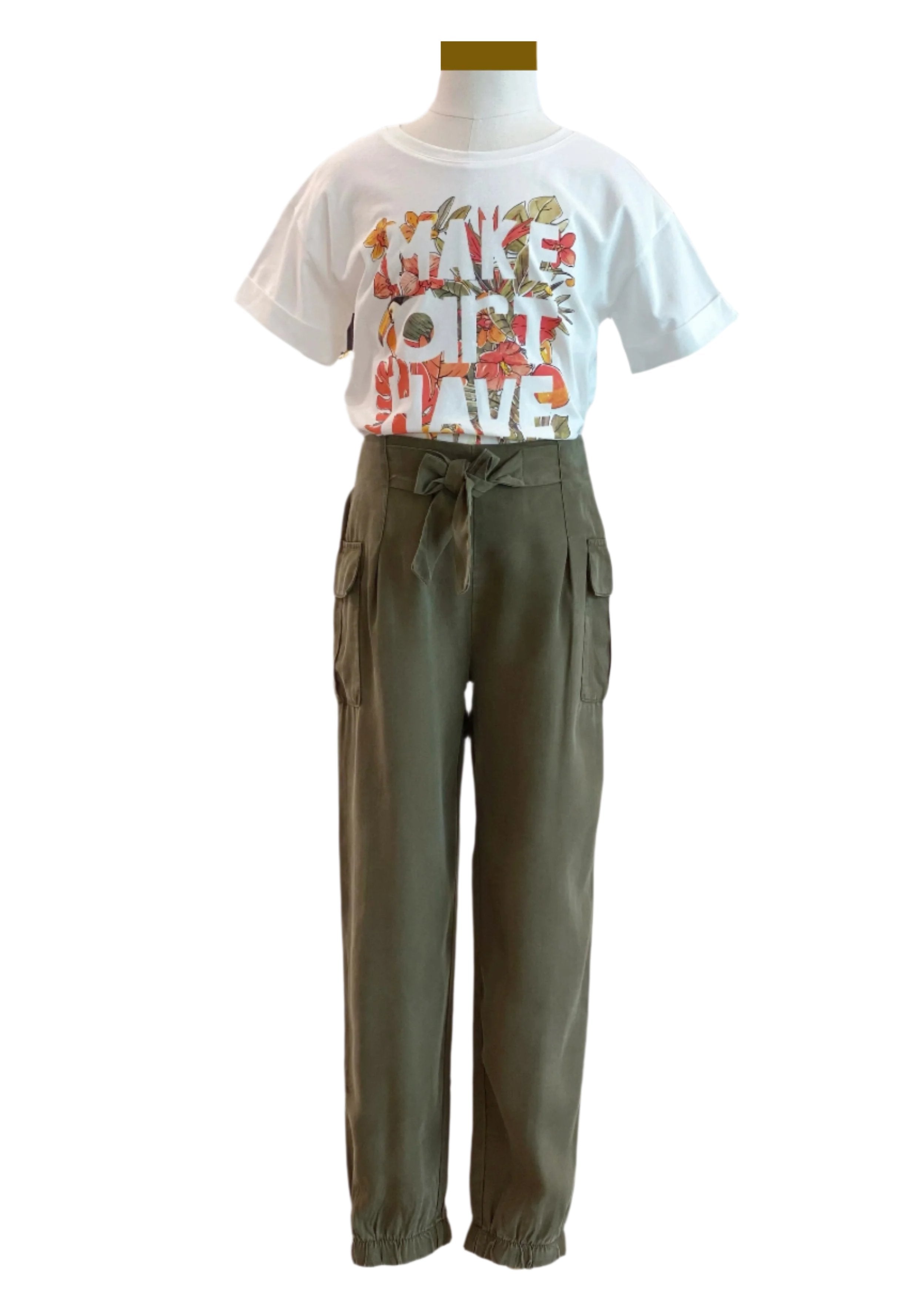 Chic, stylish top and trouser set. This set comes with a hippie girl 'Make art have fun' printed on the chest and have hem on both sleeves. The top is matched with a soft jogger pants with two side pockets and elasticated waistband.