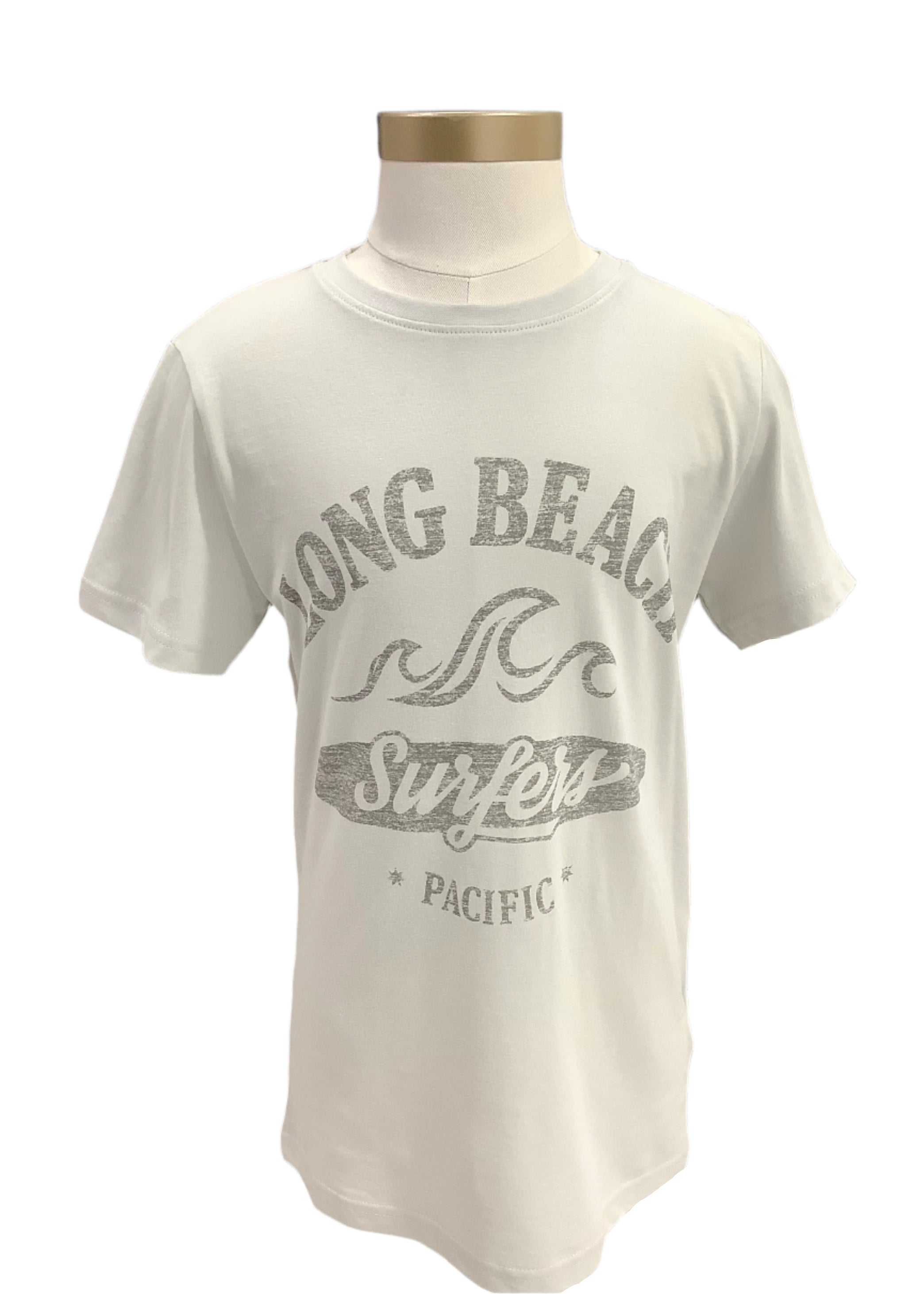 Dark gray round neck, short sleeves top. Designed with surfing theme and writings with biker print. A product of Mayoral from Spain.