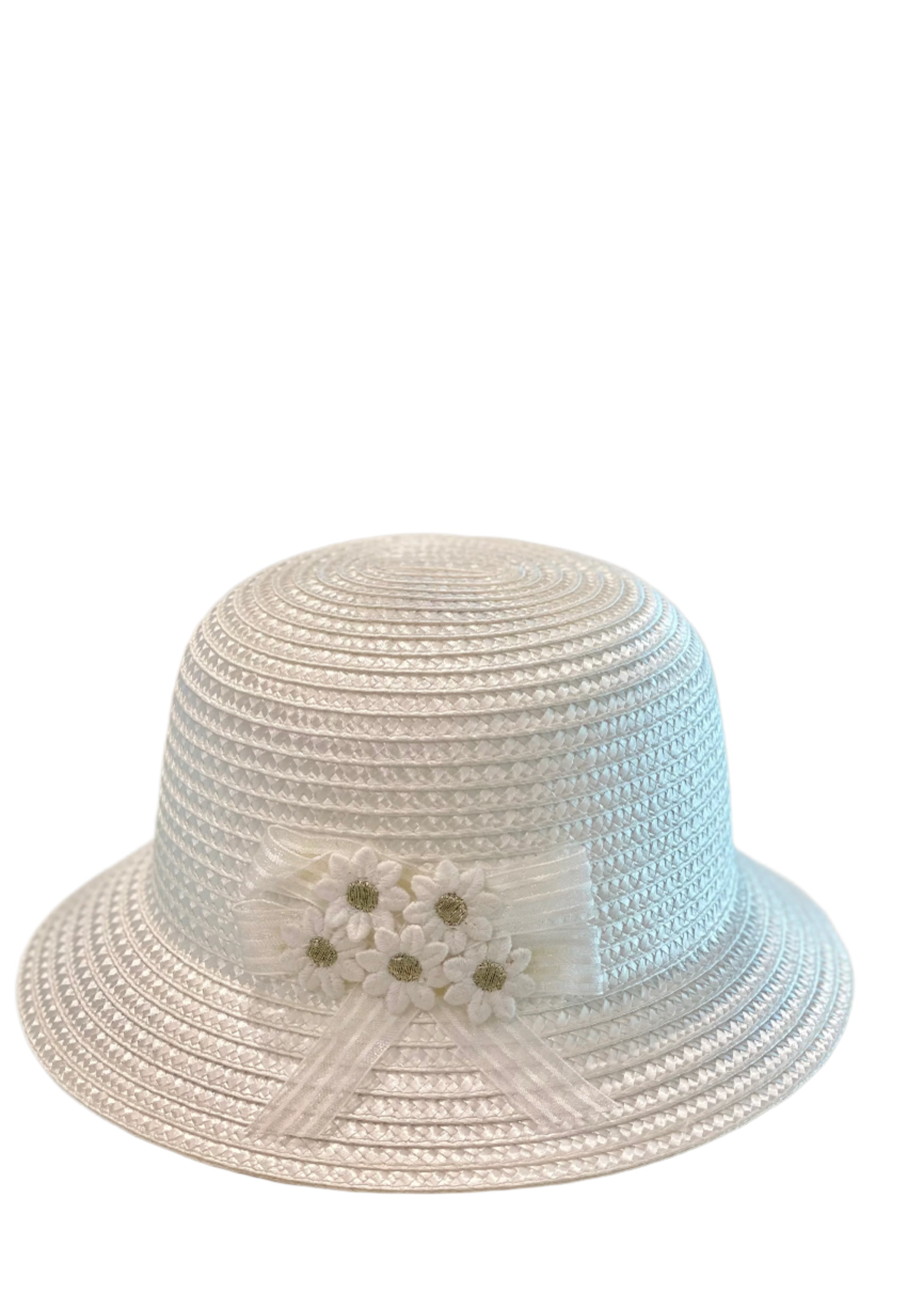 Pretty, fashionable sunhat simply designed with floral appliques and stripe transparent ribbon. A product of Mayoral from Spain.
