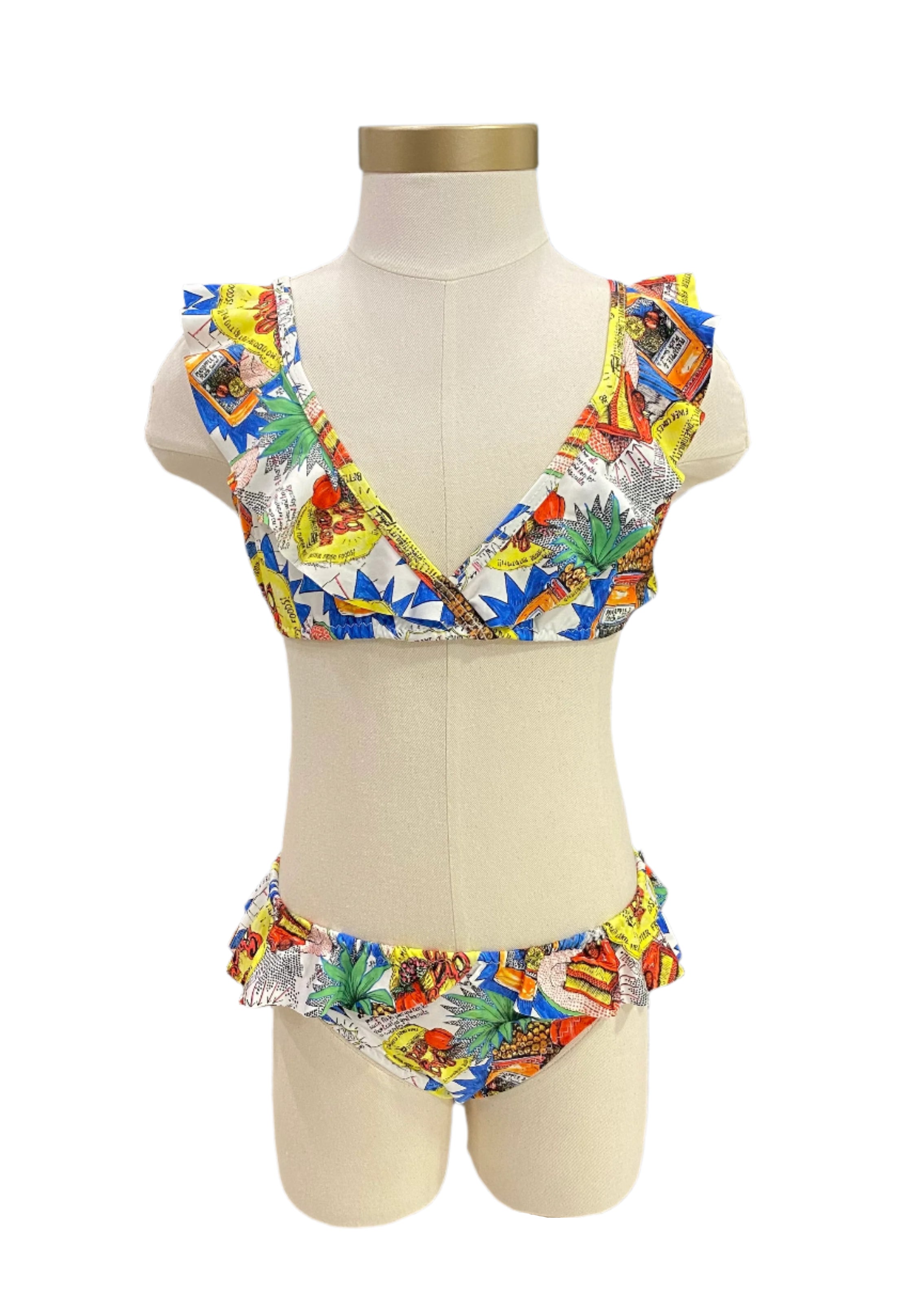Multicolored two-piece swimsuit. Design with pineapple prints. Finished with frill trims. A product from Mayoral.