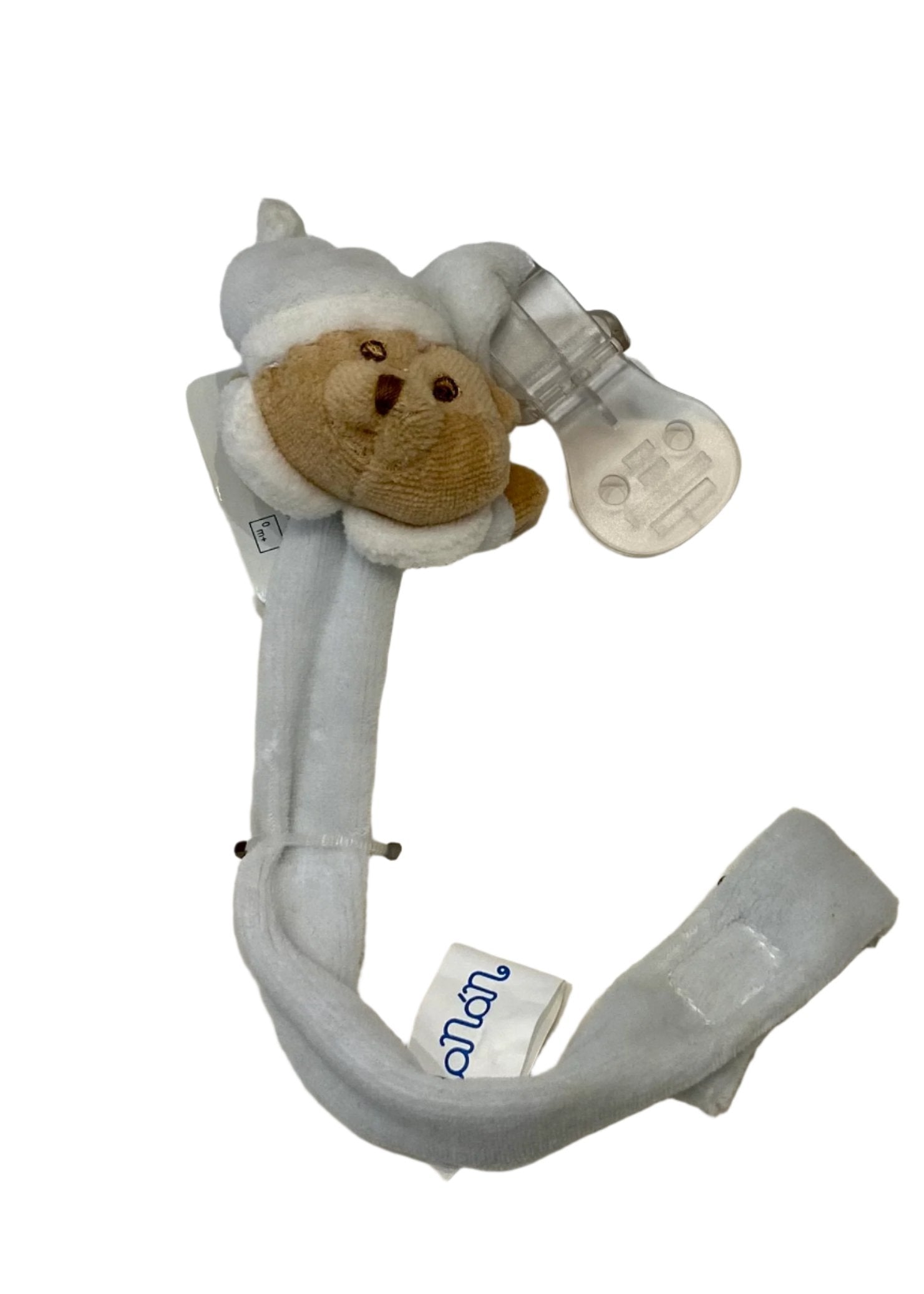 A stylish pacifier holder for your baby. Has soft strap doudou with clip on one end to hold the pacifier. A product of Nanan from Italy.