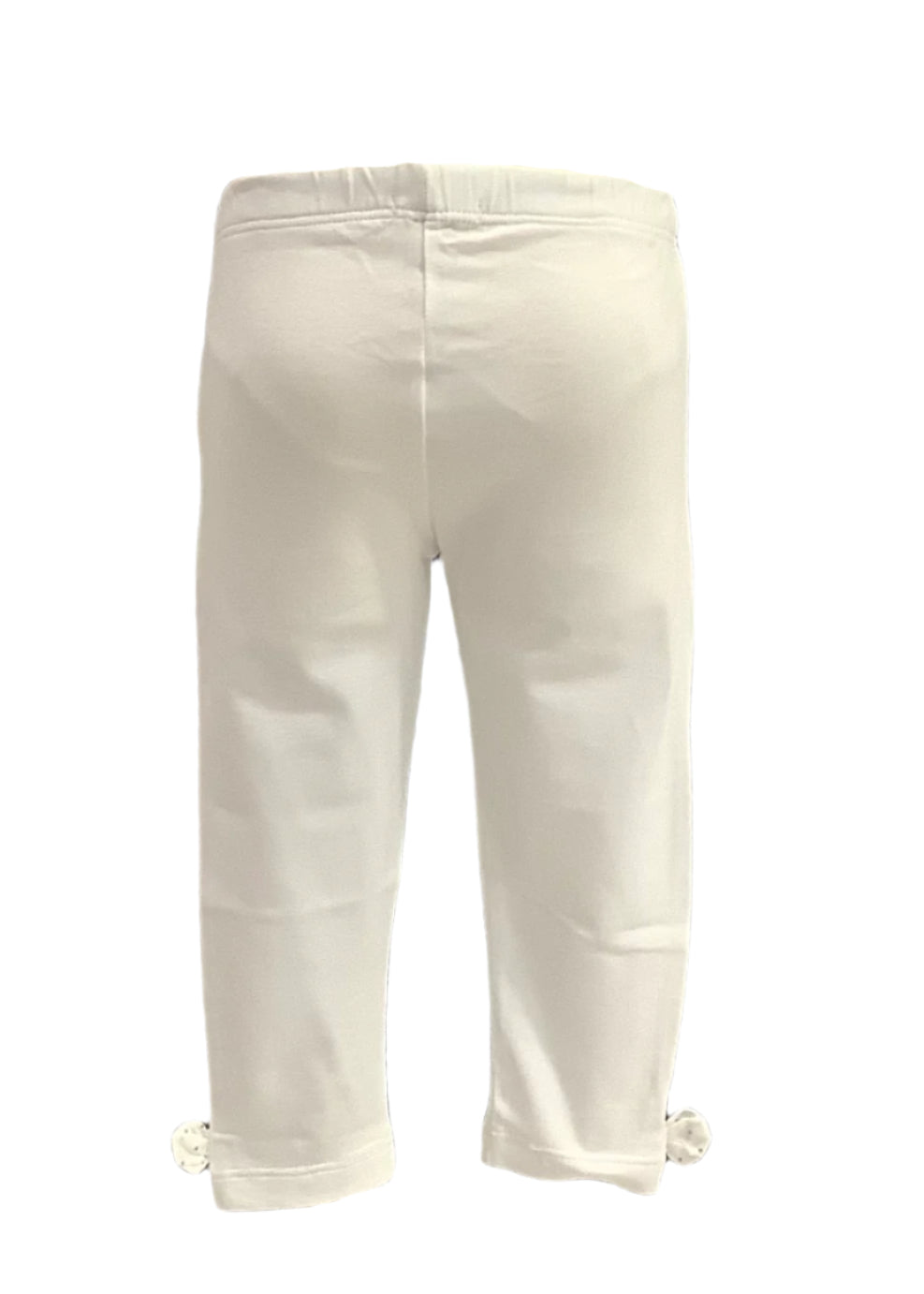 Stretchy plain white leggings by Nanan. Simply decorated with polka dot bow on both side. Stitched with brand name in silver. Simply beautiful.
