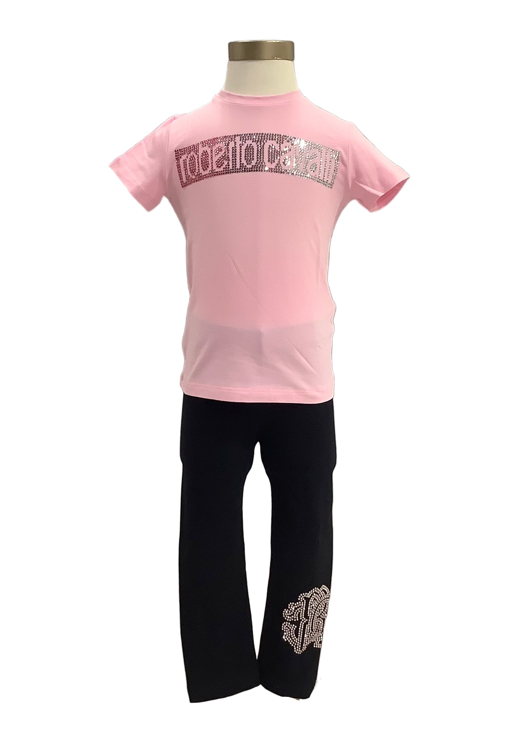 Soft, casual outfit for your baby girl. Made with soft cotton materials, top are designed with 'roberto cavalli' writing made with studs and leggings with 'RC' logo studs.