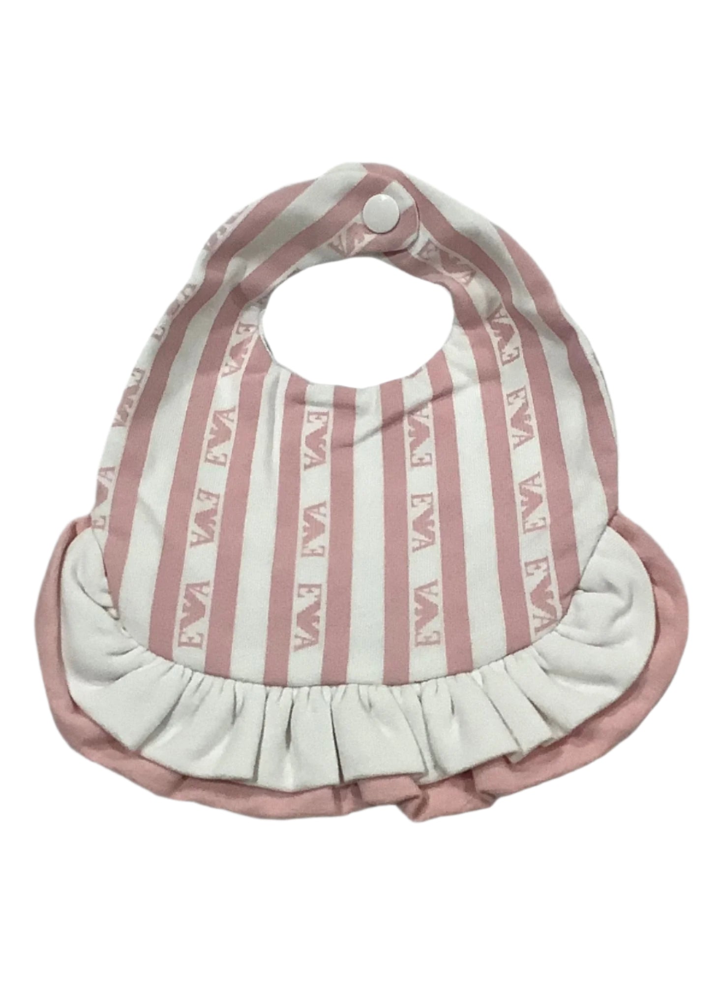 Lovely bib from Armani. Design with stripes and Armani logo, finished with ruffle trim. Snap button closure.