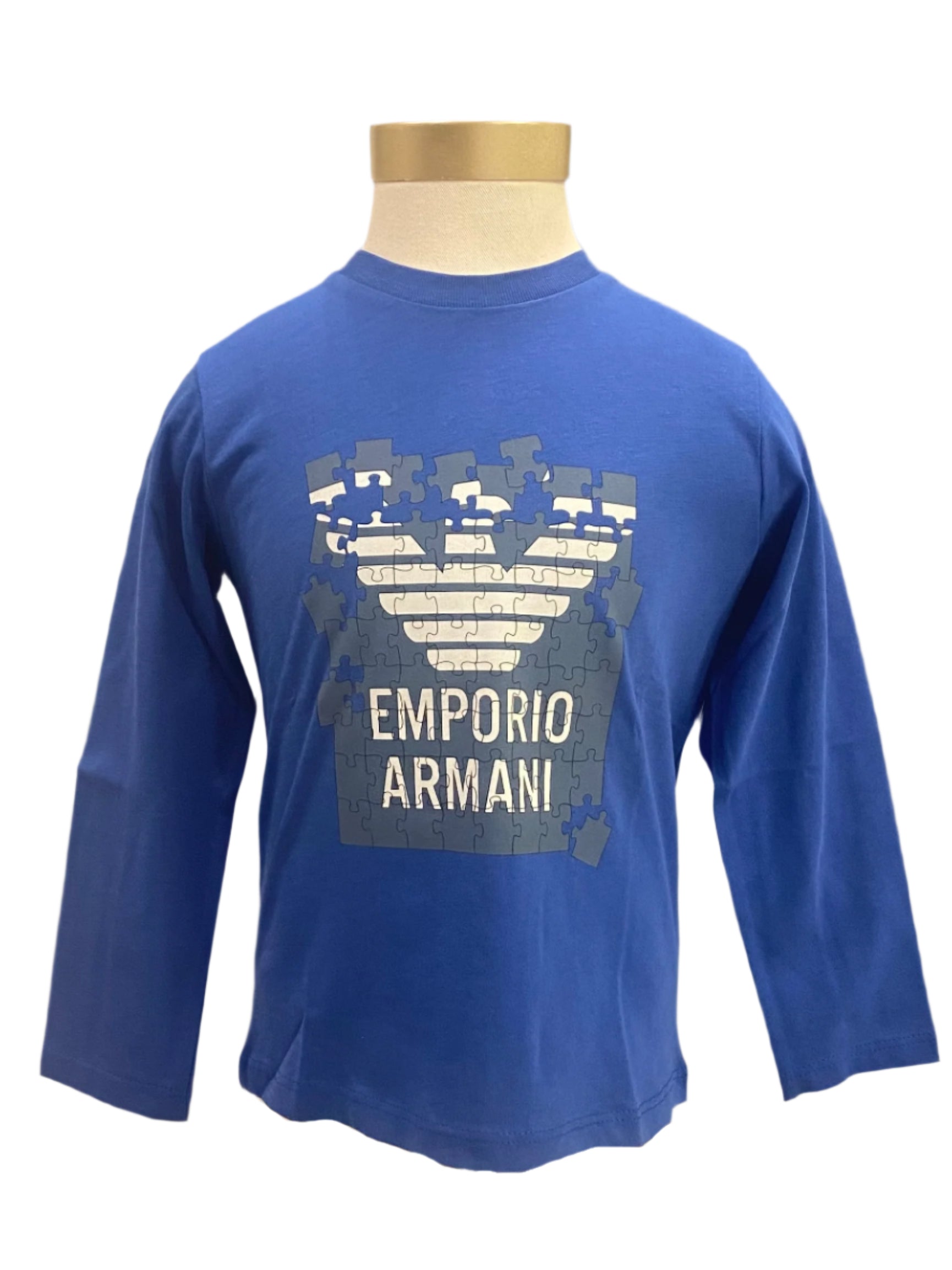 Round neck long sleeves t-shirt printed with puzzle eagle logo and brand name design. Button snap fastening at the back for easy wearing.