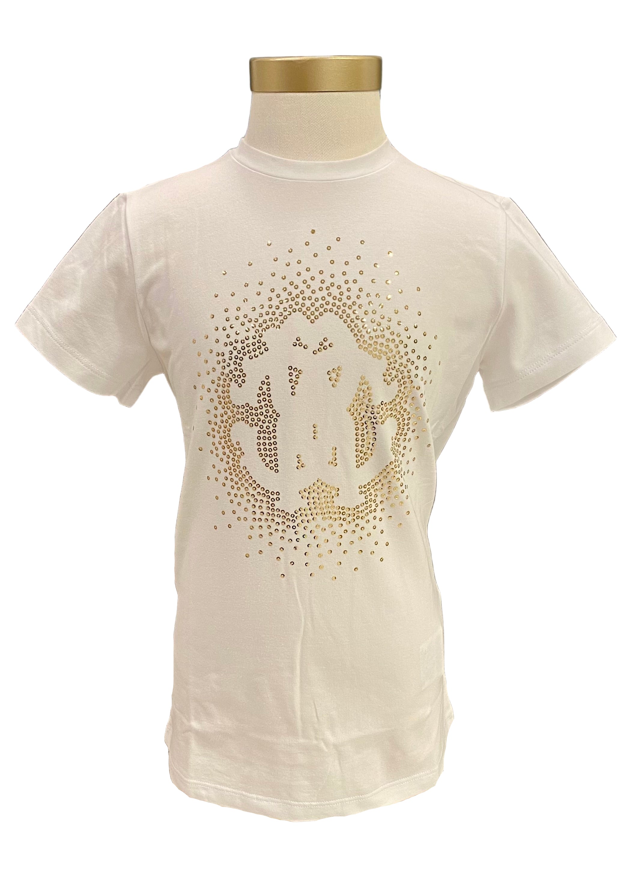 Cotton, soft jersey t-shirt designed with sequins forming 'RC' logo on the chest. A product of Roberto Cavalli from Italy.
