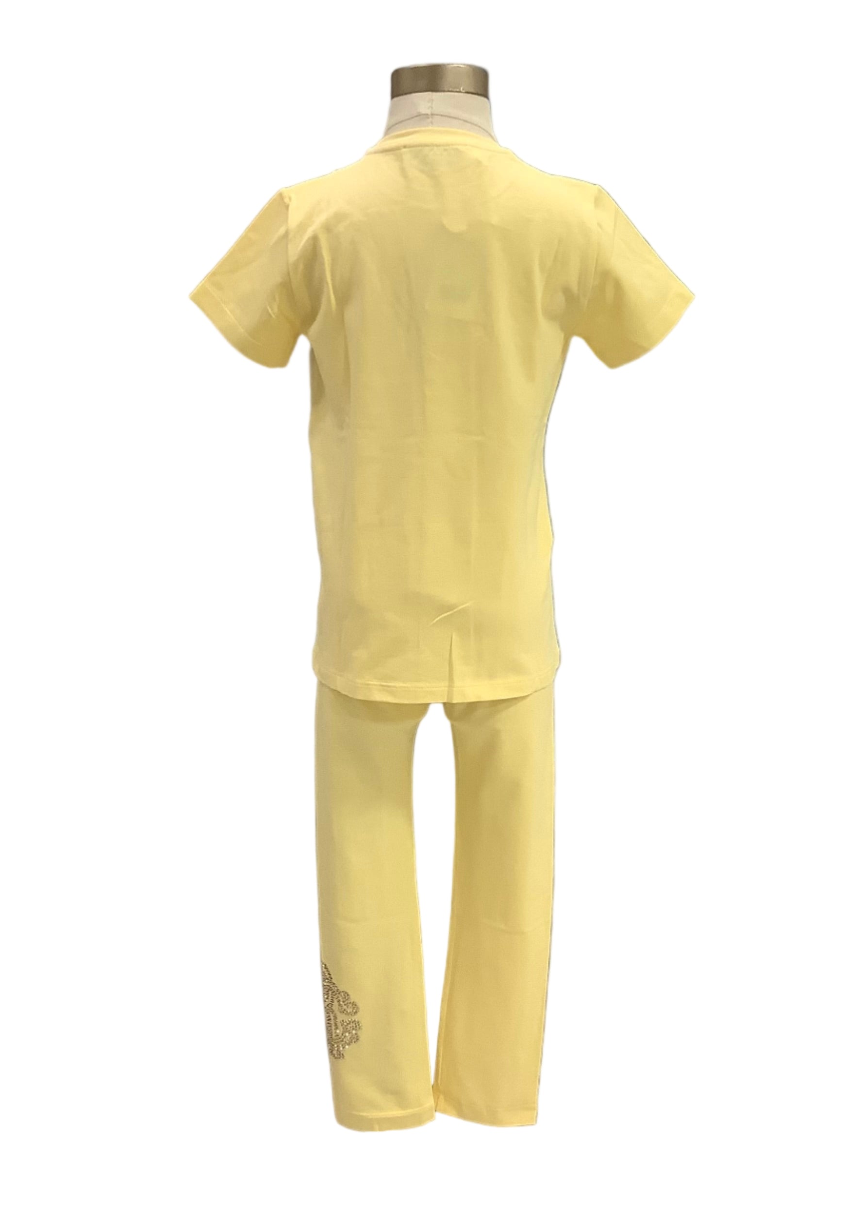 Soft, casual, all yellow outfit for your baby girl. Made with soft cotton materials, top and leggings are designed with 'RC' logo made with gold studs.