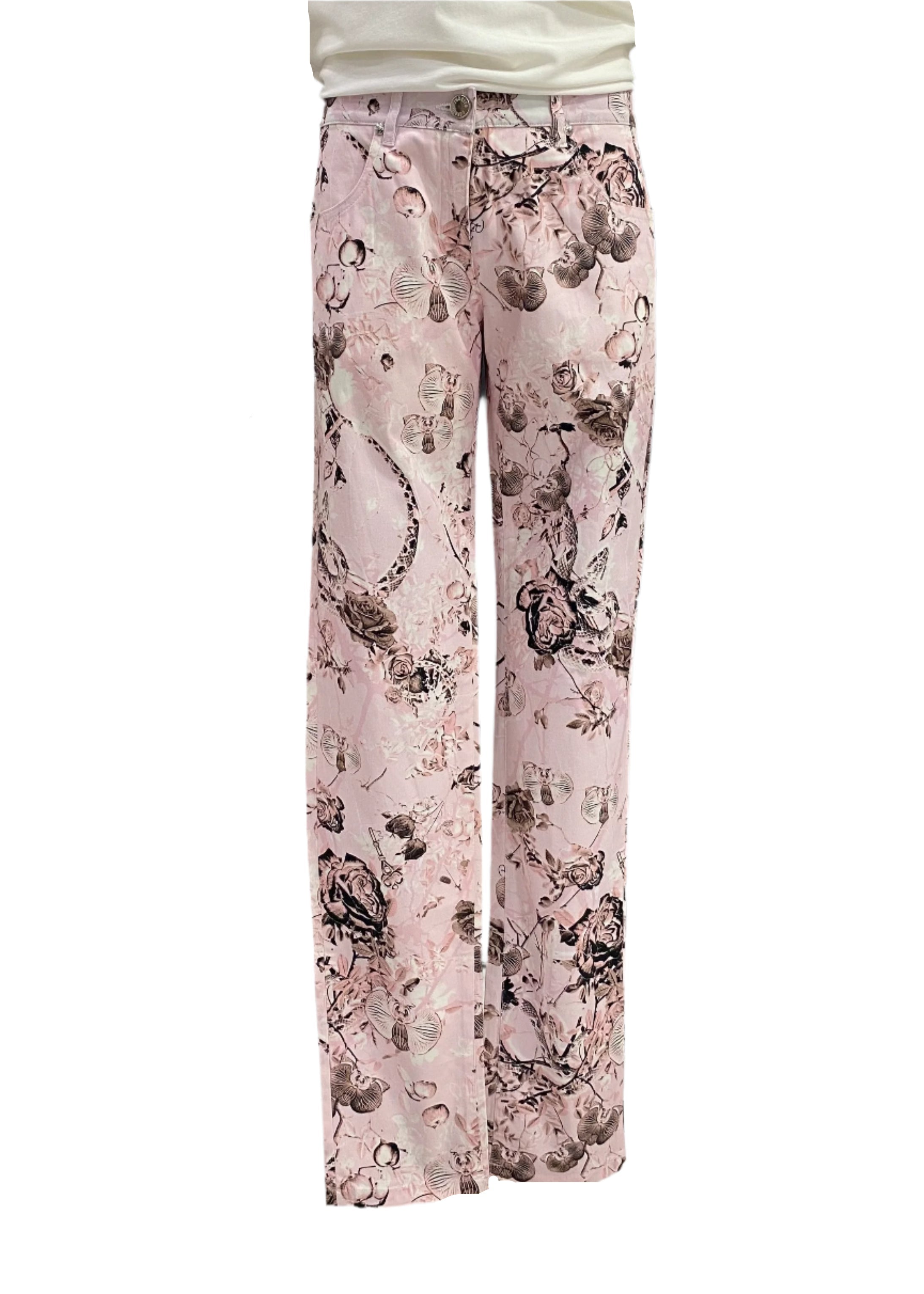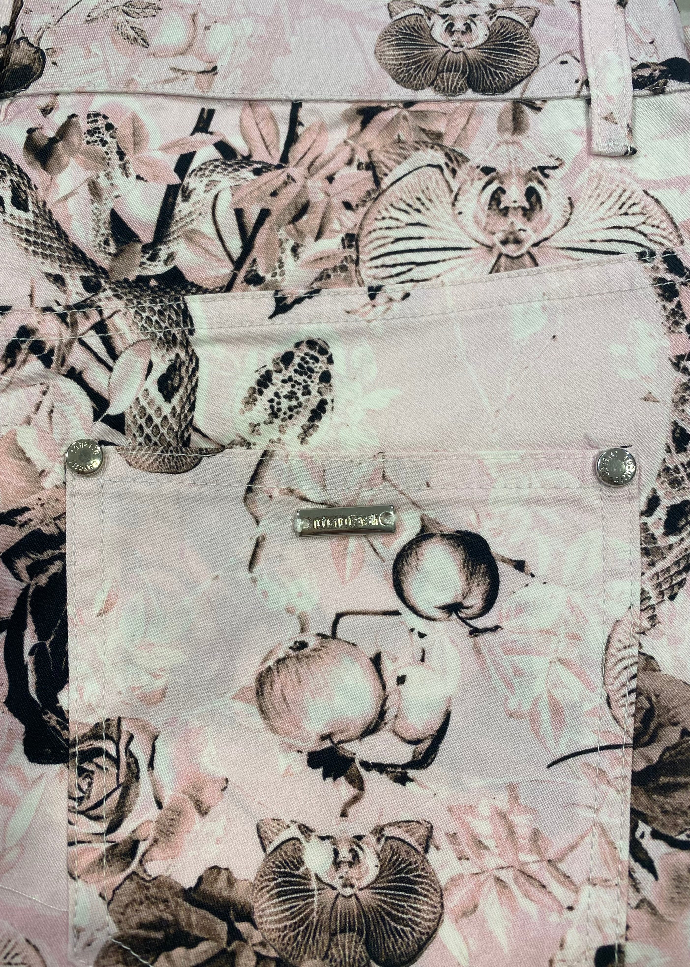 This trouser has an all over forest creature print as a design. With pockets on the front and at the back. Skinny fit. A product of Roberto Cavalli from Italy.