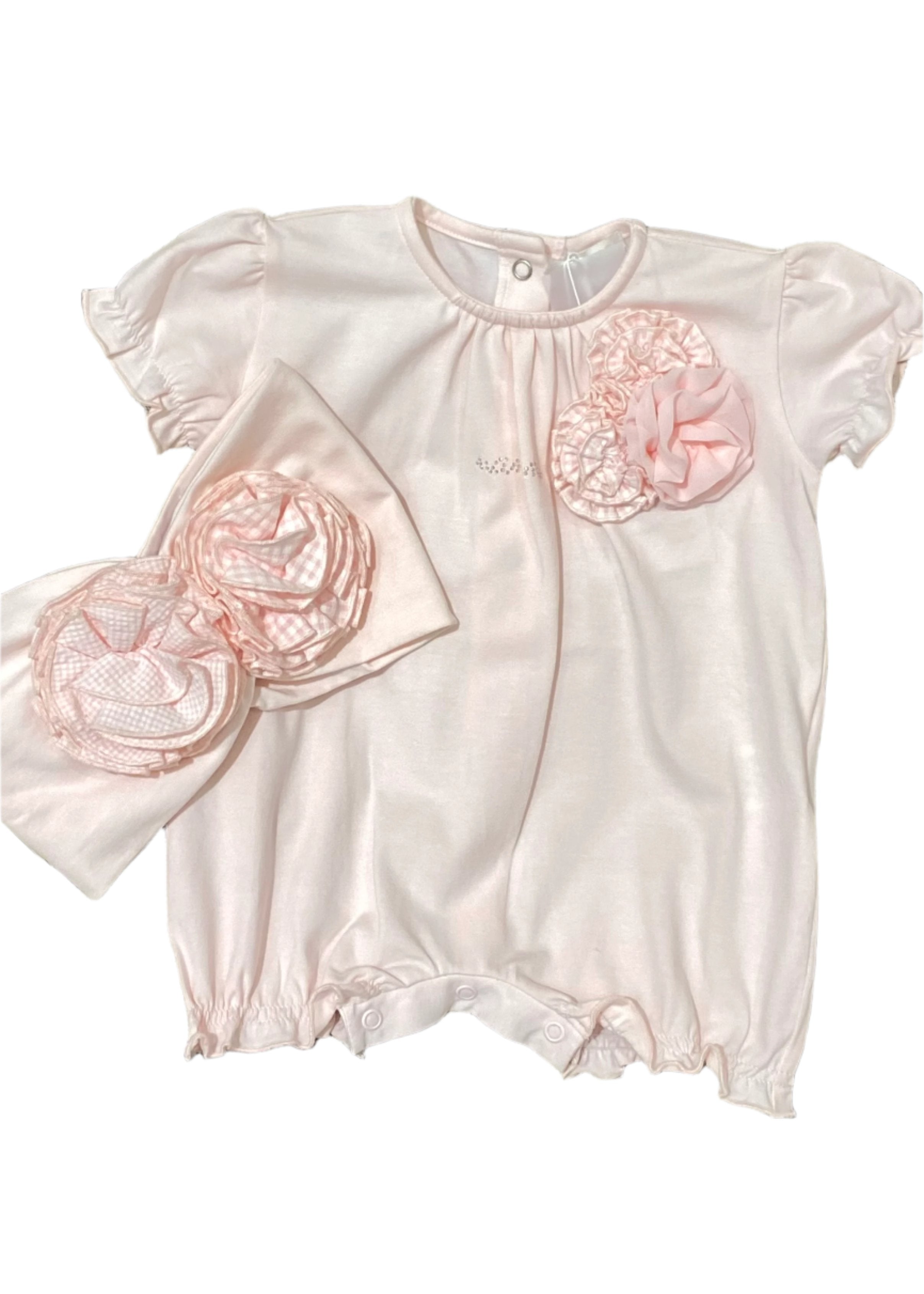 Lovely shortie and headband set. Both are designed with rose applique.