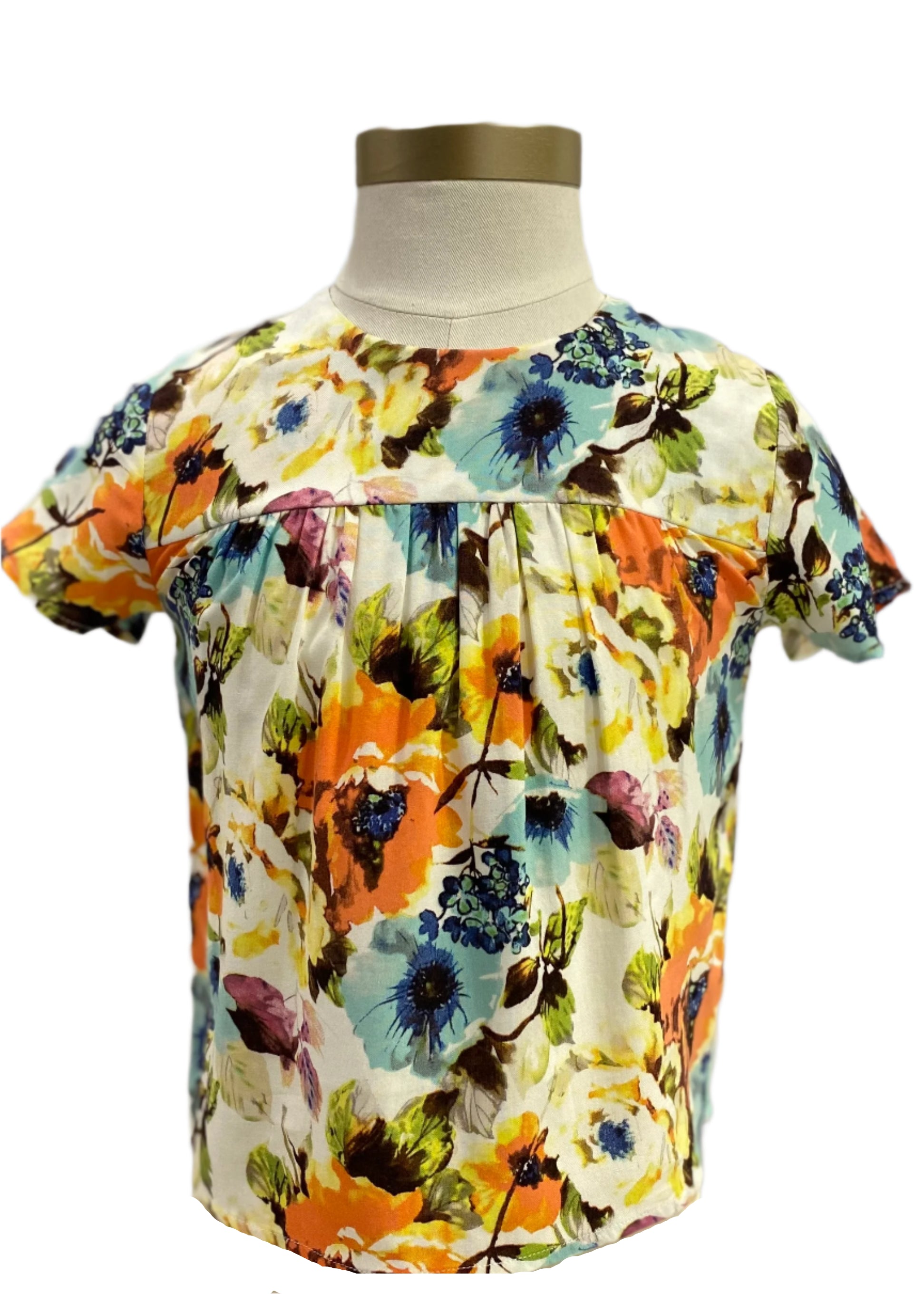 This is made of soft fabric. Featuring floral design, round neck and has button fastening on back.