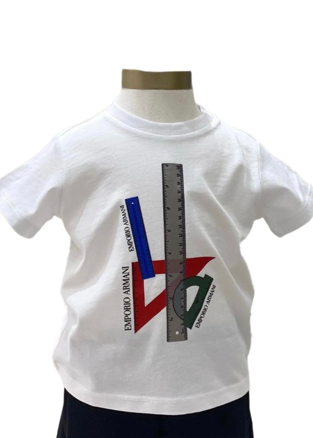 Made with soft cotton jersey, this t-shirt has rulers print design. Snap button fastening at the back. Comfortable to wear.