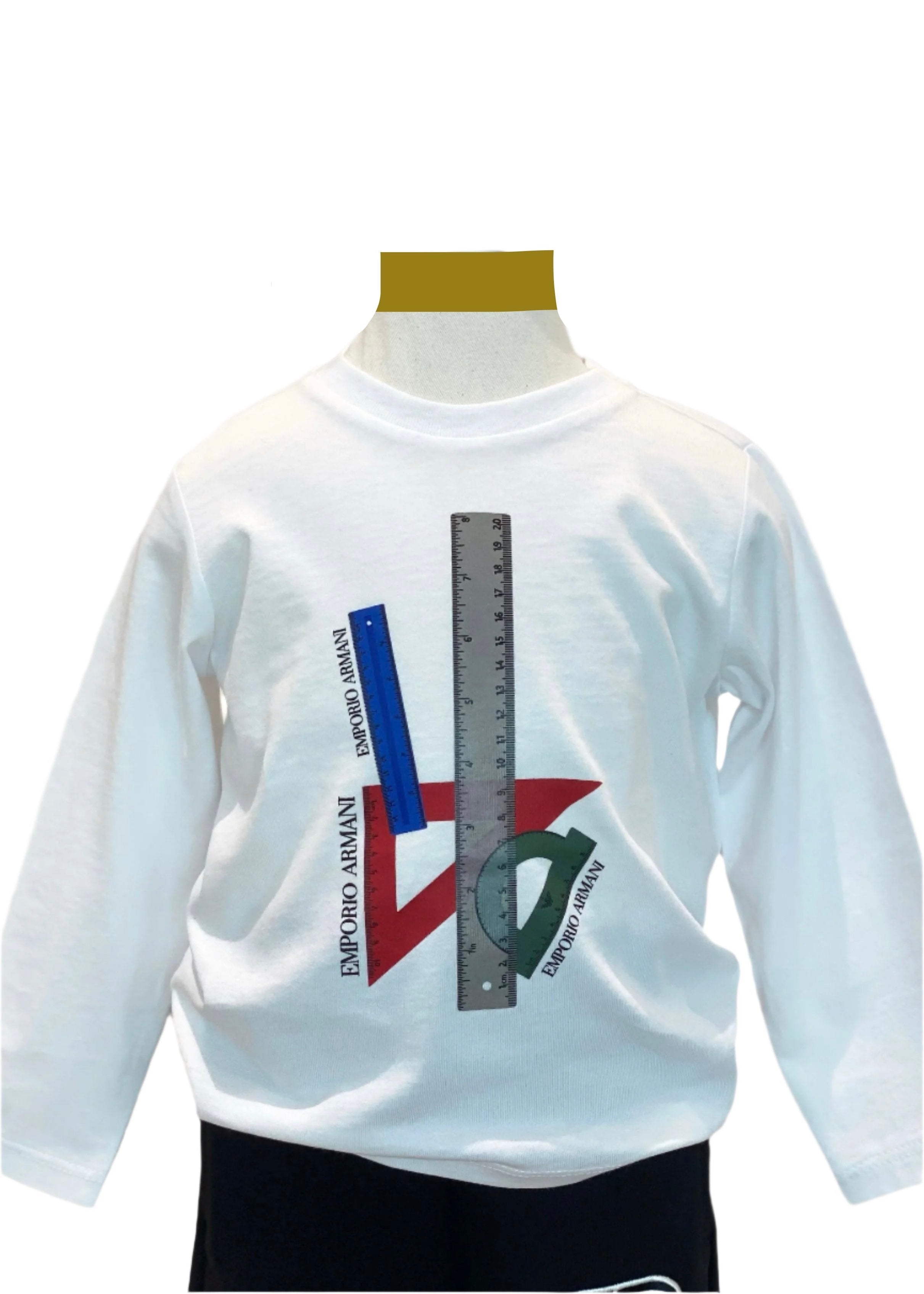 Made with soft cotton jersey, this t-shirt has rulers print design. Long sleeve, snap button fastening at the back. Comfortable to wear.