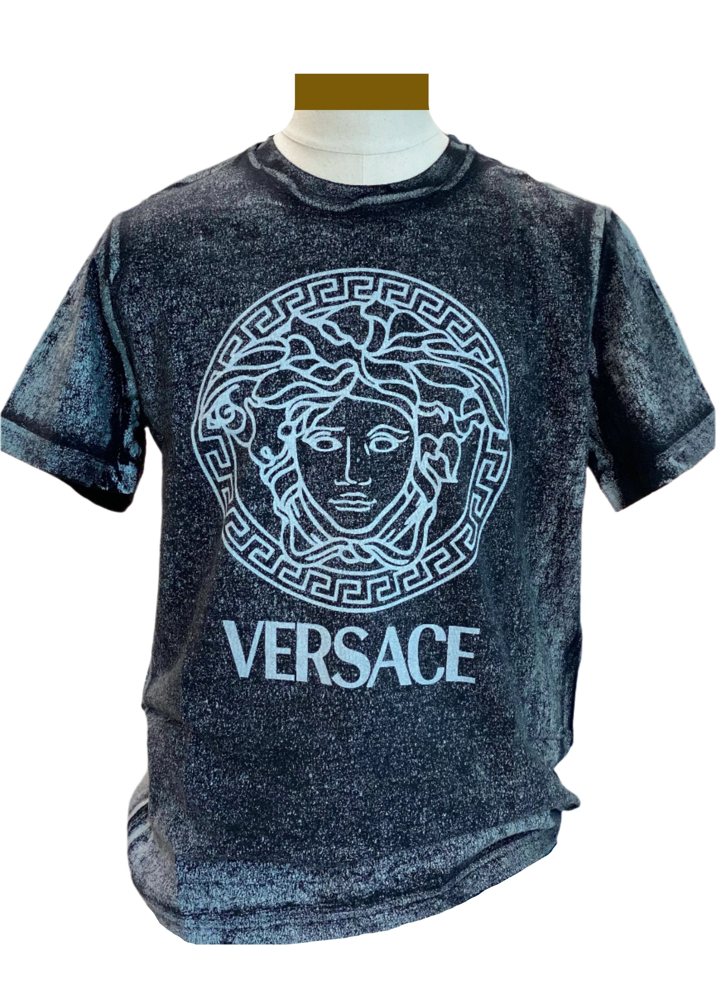 Stylish boy casual t-shirt. A unique shiny washed style t-shirt, round neck, short sleeves. Finishes with medusa logo and 'VERSACE' writing.