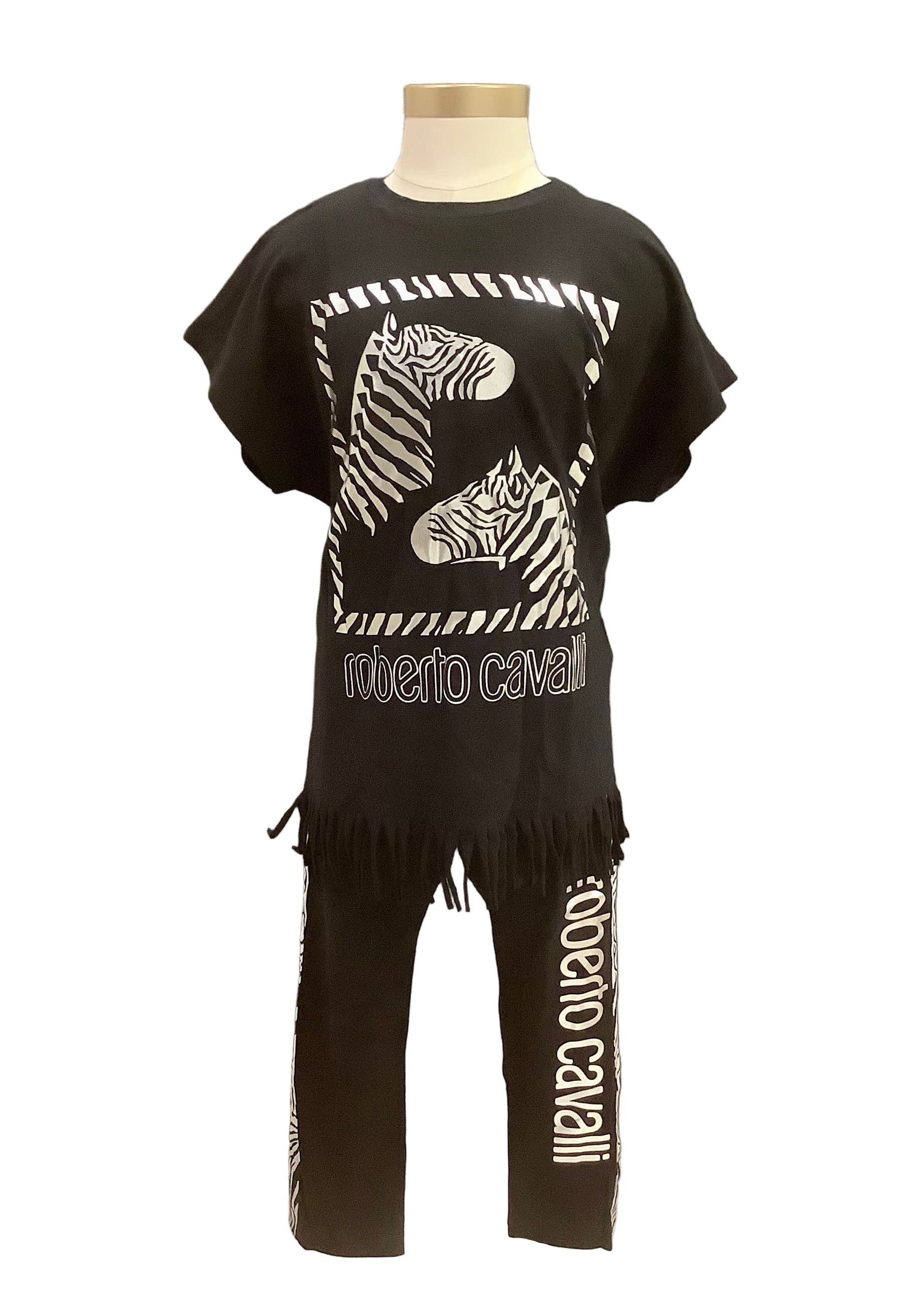 Soft, casual outfit for girls. Made with soft cotton materials, this legging set comes with a silver zebra printed top and is match with a short leggings.