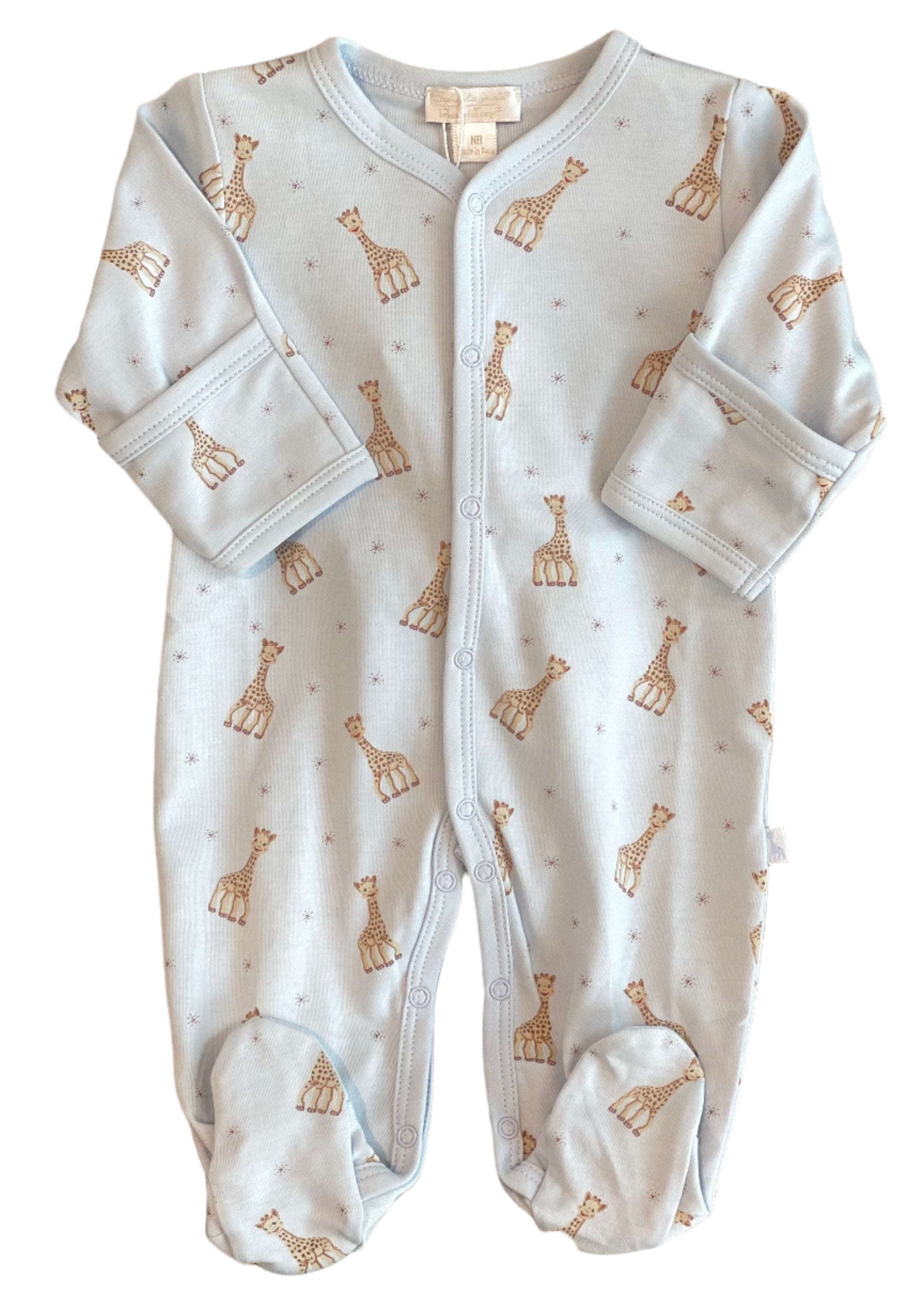 All over giraffe print footie for boy. Button snap fastening on the front and in between legs. Soft and comfortable to wear.