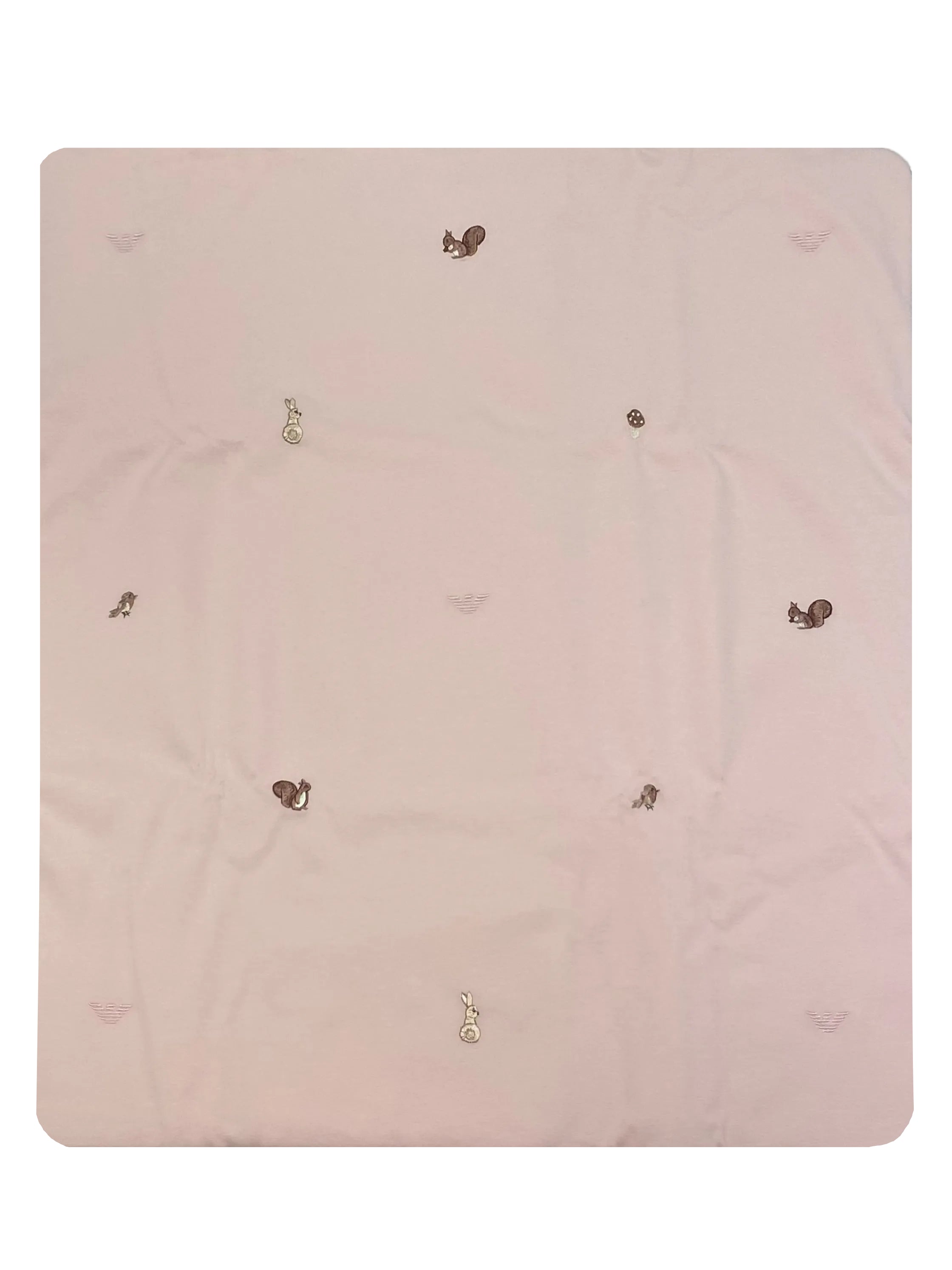 A soft baby blanket made with cotton jersey. Delicately embroidered with squirrels and Armani logo as a design. Use as a wrap or cover for your baby.
