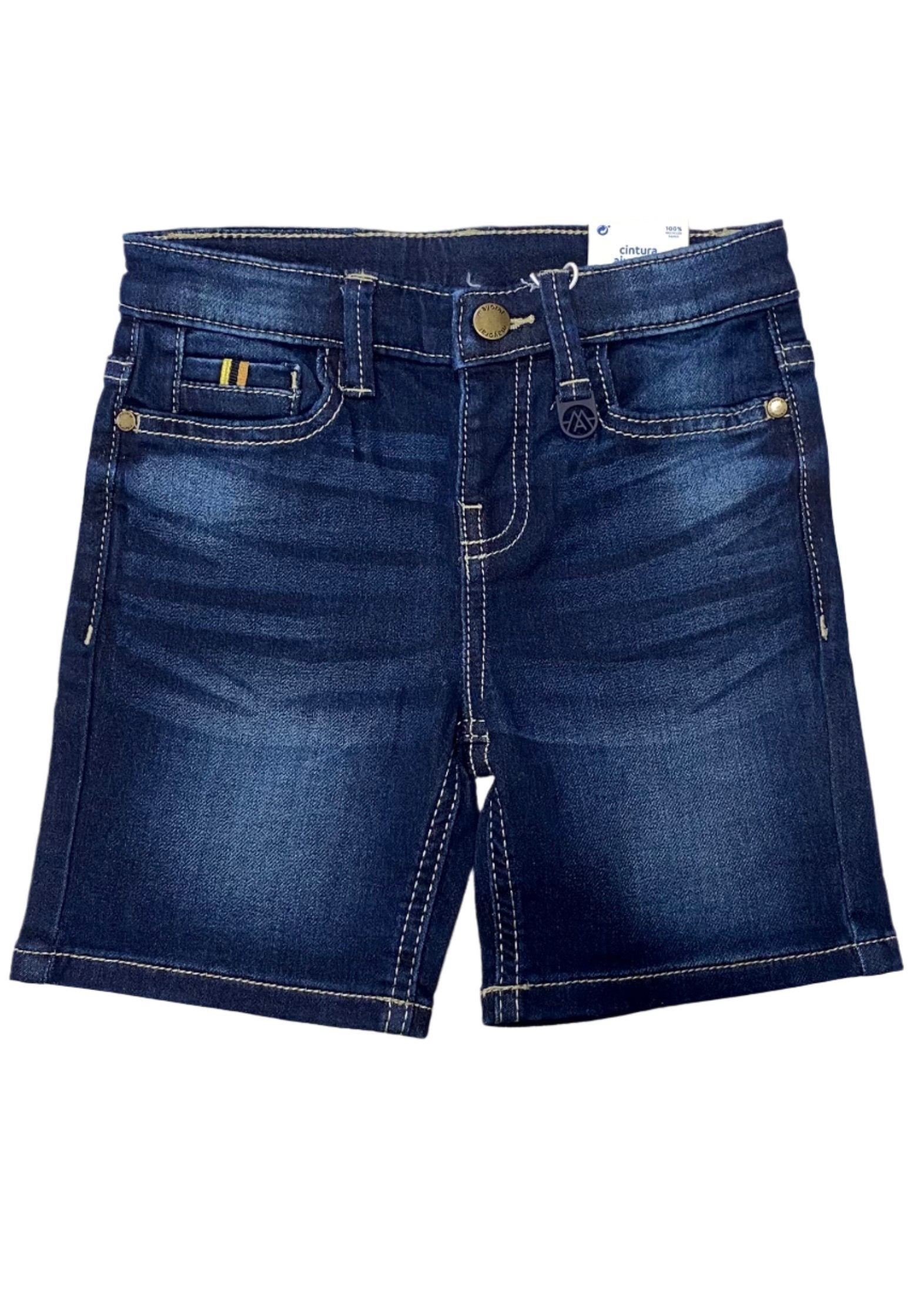 Stretchy denim short with faded design. It has standard five pockets and has adjustable waistband.