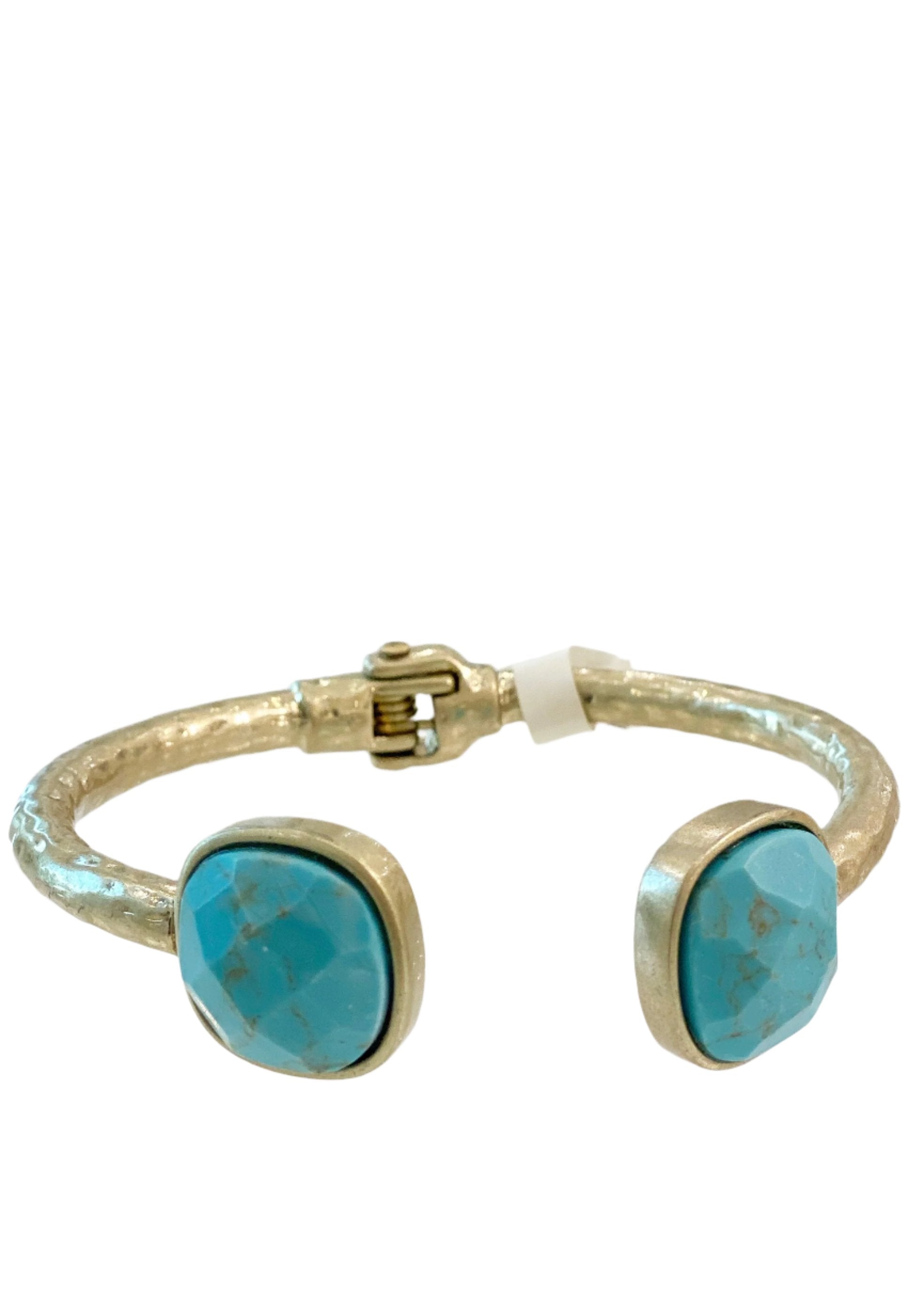 Golden hinge cuff bracelet designed with a turquoise stone on both ends. A product of Utterchic from U.S.