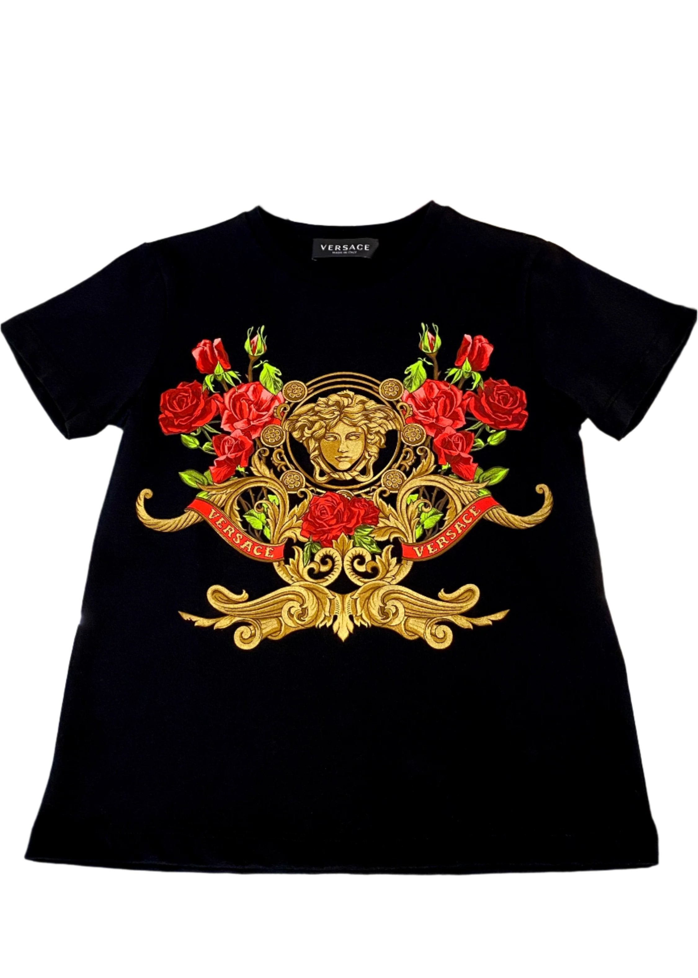 Aesthetic, laid-back t-shirt from the luxury brand, VERSACE. Made with 100% cotton making it comfortable to wear. Crew neck, designed with VERSACE medusa logo and frenzy roses print.